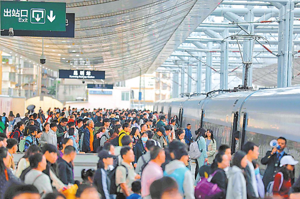 10月8日,云南铁路迎来返程高峰,预计发送旅客59万人次。当日,中国铁路昆明局集团有限公司计划开行旅客列车539列,涵盖昆明至北京、上海、广州、深圳等一线城市的动车和普速旅客列车,以及昆明至大理、丽江、保山、红河、香格里拉等旅游地区的列车满图开行。此外,国铁昆明局各大车站加强组织工作,增派工作人员在进站口、天桥、站台等关键位置进行引导和服务,确保旅客出行顺畅。
