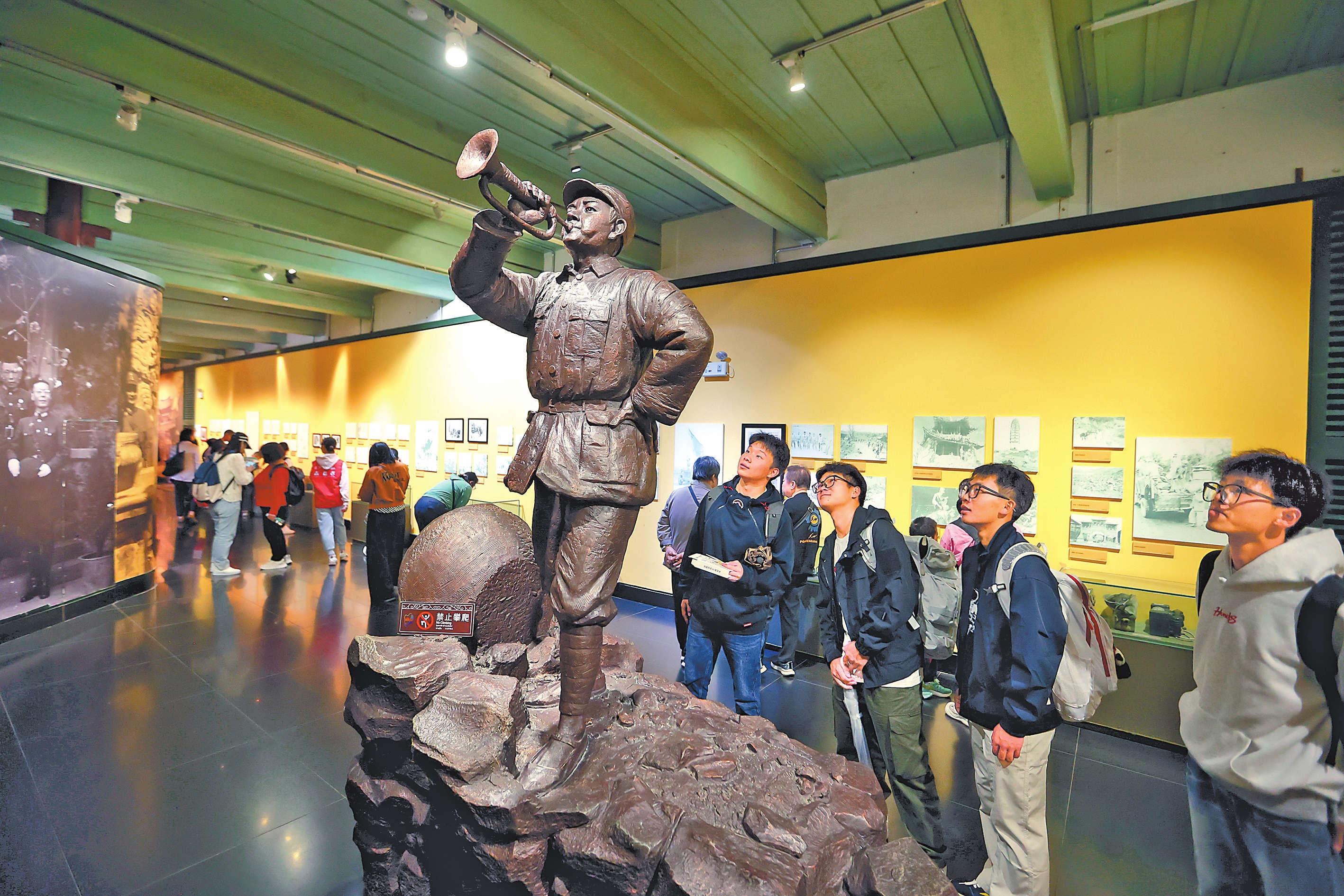 连日来,云南陆军讲武堂历史博物馆《中国远征军》主题展览,昆明市博物馆“血肉筑就抗战生命线——抗战时期滇缅公路档案文献图片展”“长空飞虎——飞虎文物展”等主题展览成为市民和游客的热门选择。人们通过珍贵文物、历史影像和生动讲解深刻感受到云南在抗日战争中的历史贡献,深切缅怀南侨机工、飞虎队等的英雄事迹。图为国庆中秋假期,市民和游客参观云南陆军讲武堂历史博物馆《中国远征军》主题展览。本报记者 陈飞 摄