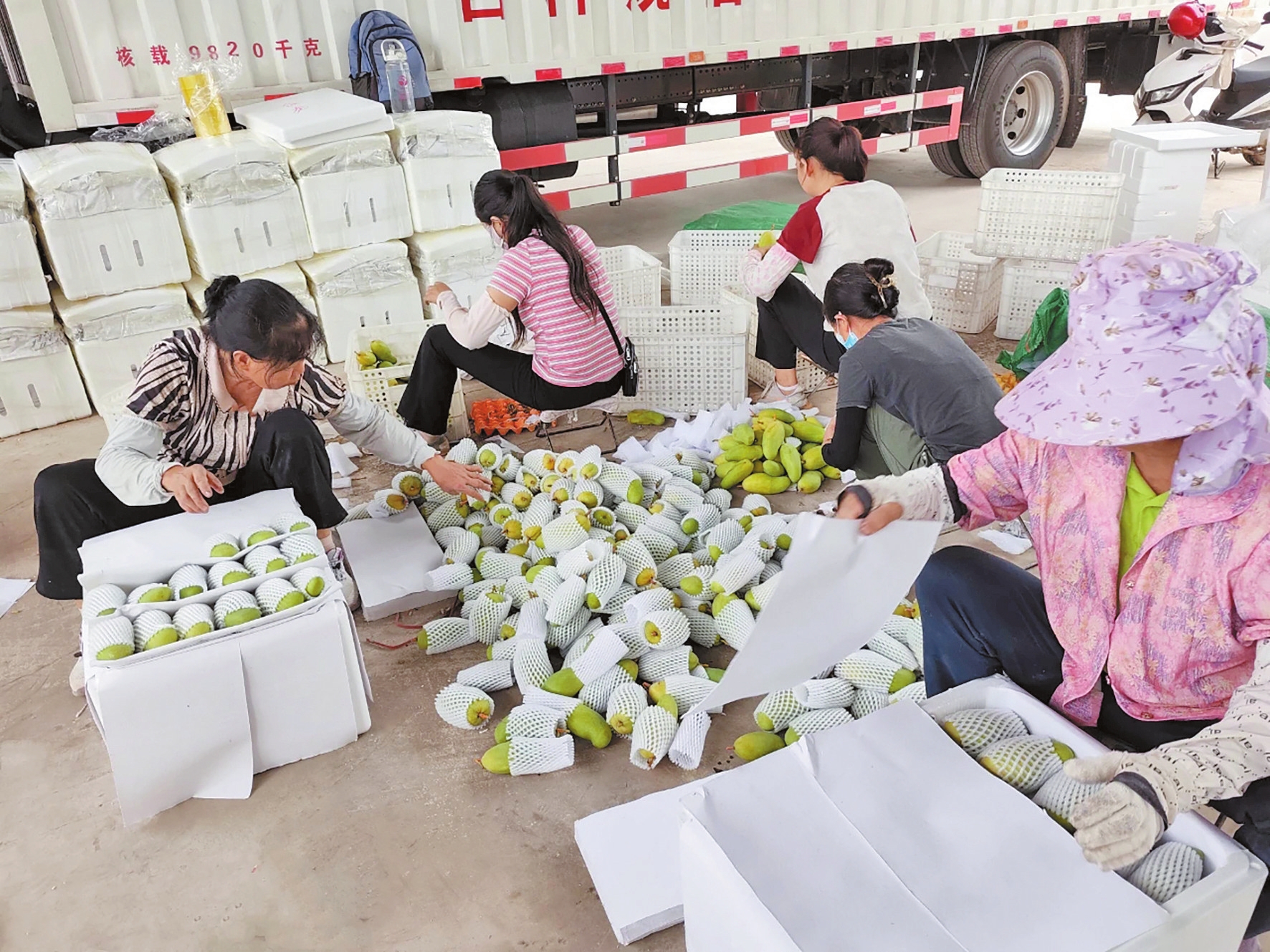 荣将镇和爱村村民吴定坤家距离新庄乡仅有三四公里路程,每年农闲季节,她都会前往新庄从事芒果套袋、打包,西瓜定秧、采收等工作。吴定坤说,过去都是熟人互相介绍,工作机会不多,现在有了驿站,短短一个农闲季,预计能增加收入近万元。“打包、追肥、修枝都可以来这里咨询,一天能挣150元,对我们来说是个好平台。”