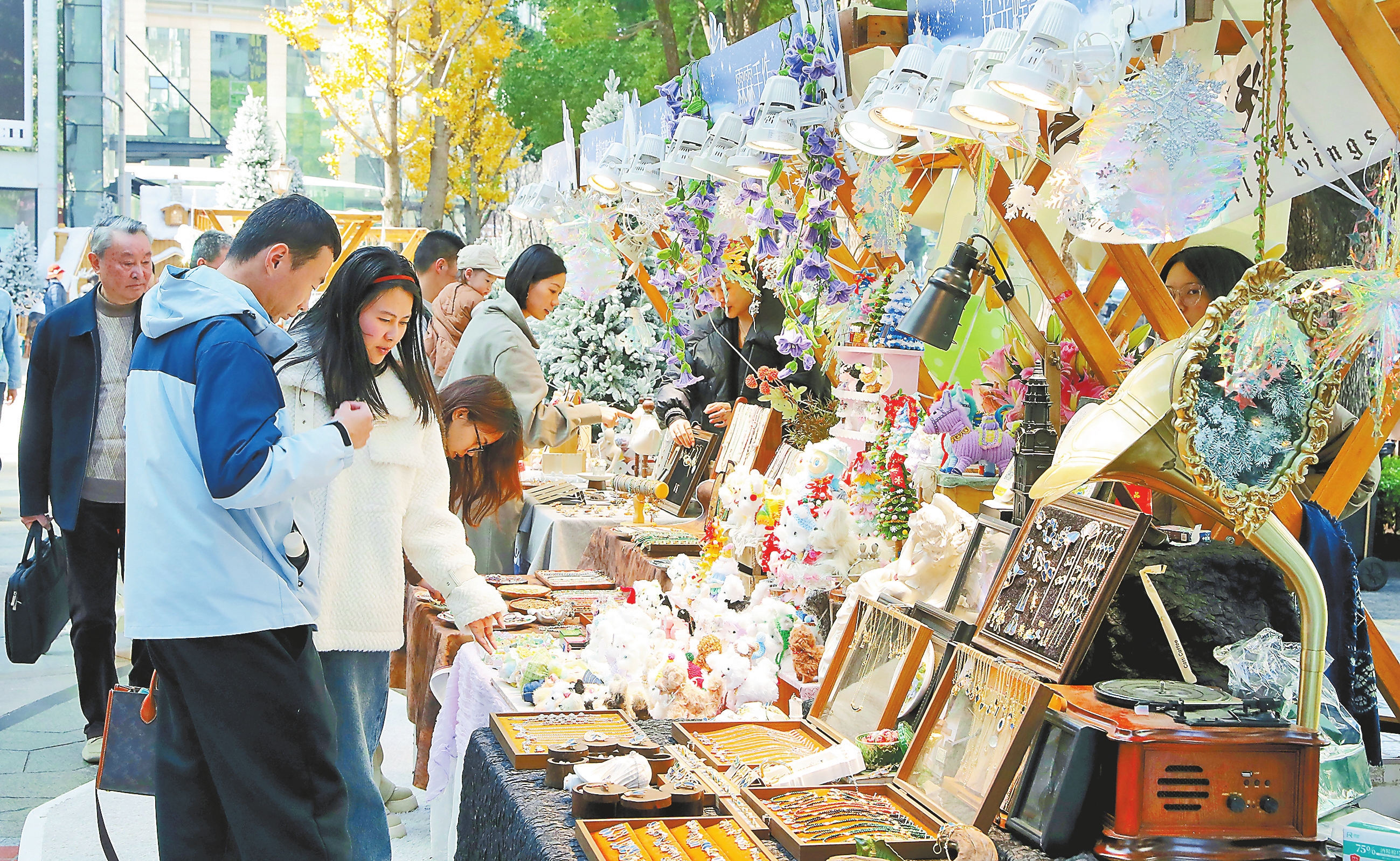 连日来,在昆明顺城购物中心,一场别开生面的冰雪主题创意集市“冬梦之集”拉开了岁末消费季的预热序幕。创意集市现场,20余个特色摊位汇聚了手作工艺品、非遗文创、冬季服饰、暖冬美食等多元业态。市民和游客穿行其间,或驻足拍照,或选购商品,现场氛围热闹而温馨。本报记者 杨峥 摄
