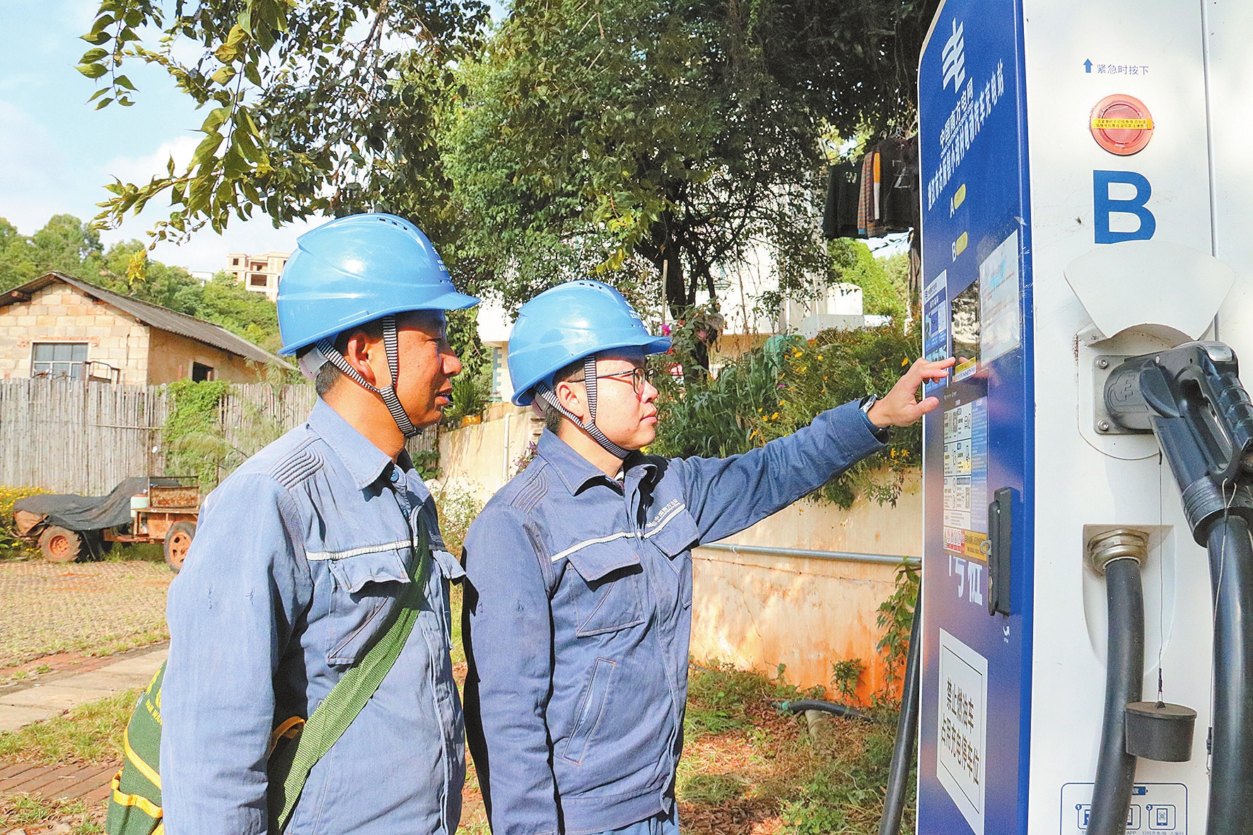 在绿色交通领域,2021年在全省首家实现充电桩“乡乡通”,2023年澄江市率先实现“村村通”。目前,玉溪市充电桩乡镇覆盖率达100%,行政村覆盖率达92%,绿色出行网络日益完善。随着供电品质持续提升,今年全市户均停电时间同比下降35%,低压故障率下降42%,为营商环境优化提供了有力支撑;在服务共建“一带一路”倡议中,建成中老铁路配套电网工程,保障国际大动脉稳定运行。