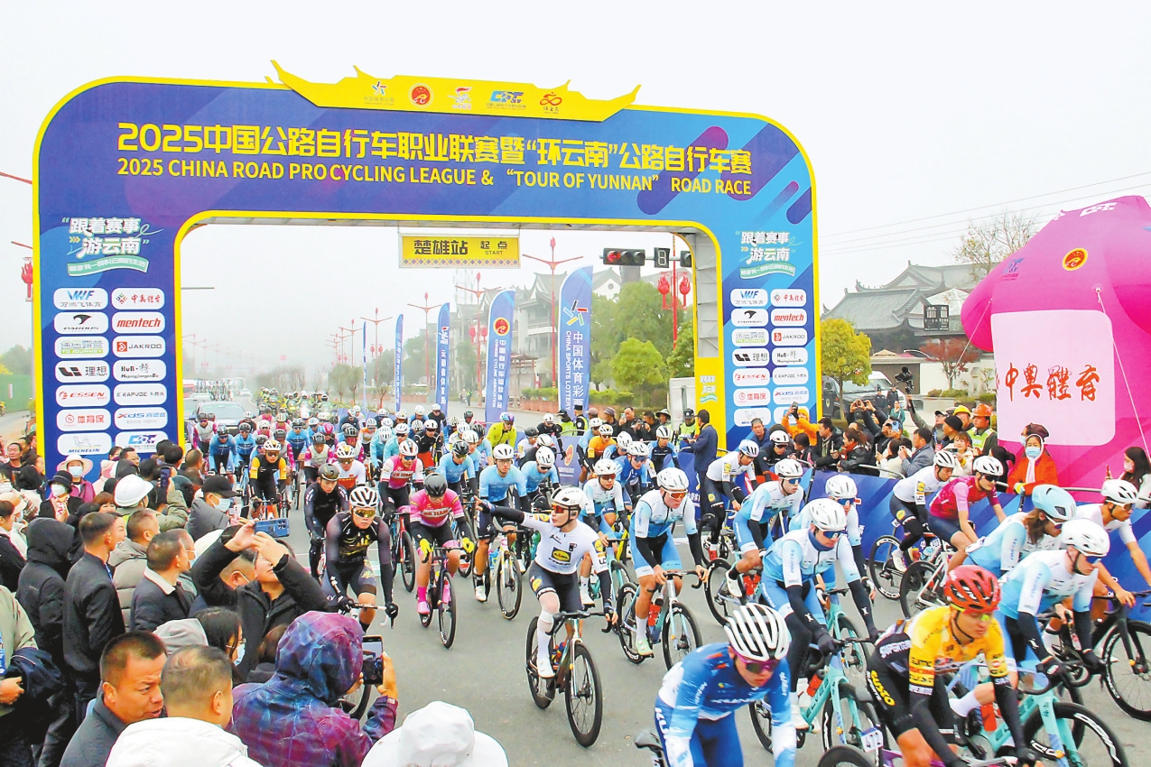 本报讯(记者 谢蕊灿) 12月9日,2025中国公路自行车职业联赛暨“环云南”公路自行车赛楚雄站赛事举办,共有20支顶尖职业车队参赛。