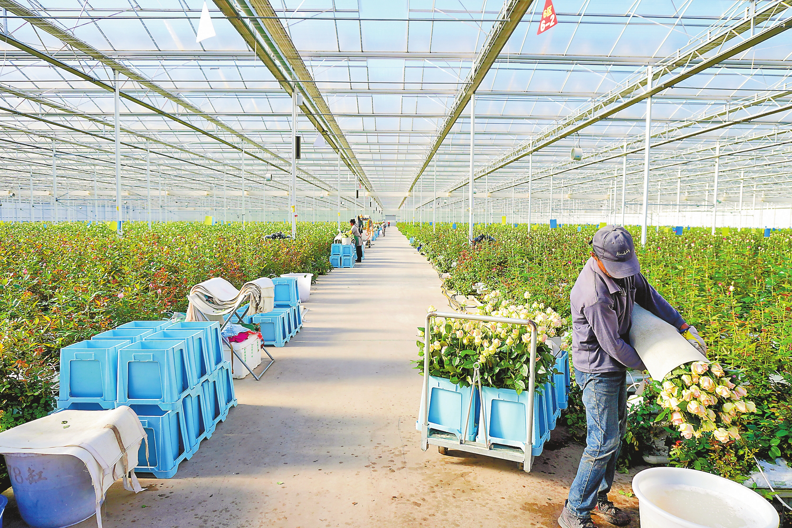 冬日暖阳下,丽江现代花卉产业园内无土栽培的48种月季与18色马蹄莲活色生香,35万平方米玫瑰馥郁芬芳,冷链物流车有序运作。产业园以智能温室、全链条数字化管控为核心,打造出集花卉种植、加工、文旅于一体的高端产业集群。