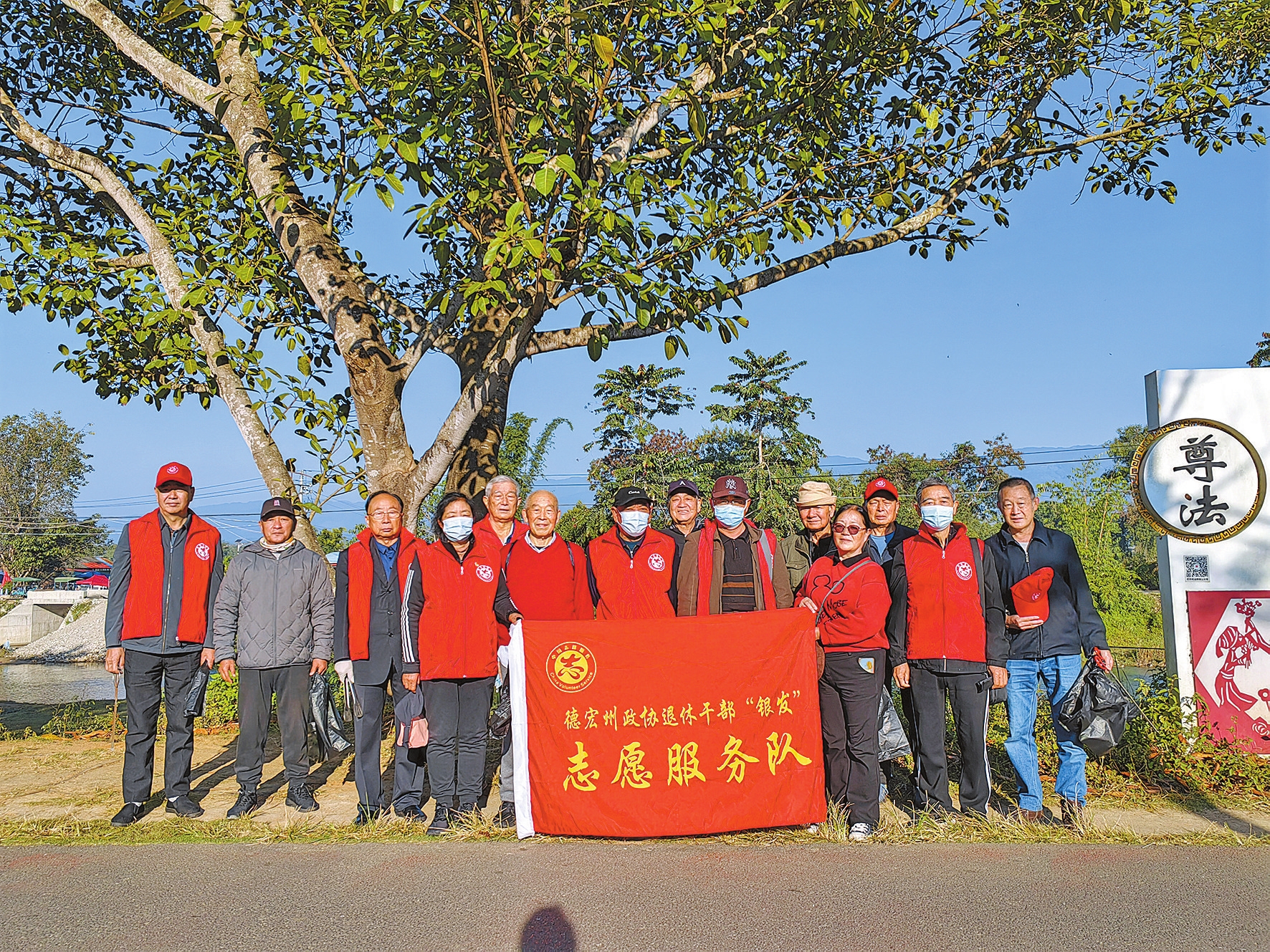 迎着初冬的暖阳,德宏州政协机关银发志愿服务队志愿者在芒市滨河大道开展捡拾垃圾志愿服务活动。大家分工明确,有的擦拭公共宣传栏、有的清理墙面小广告、有的捡拾路面白色垃圾、有的规整楼道堆物堆料、有的倾倒盘中积水……“走进河湖边、走进社区,发挥党员先锋模范作用,带动更多的群众主动加入到创文活动中来。”德宏州政协办公室一级调研员何琳说,让创文真正形成人人参与创建、人人共享成果、人人称赞成效的良性循环。