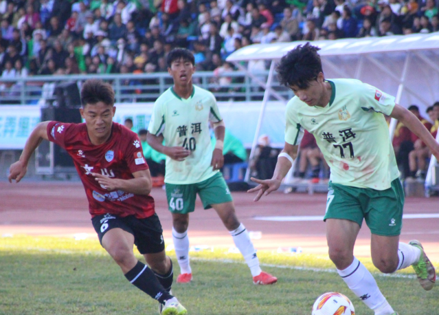 在普洱市体育运动中心体育场普洱队主场迎战文山队,普洱队充分利用主场优势发起猛烈进攻,并在第36分钟左右赢得一次点球机会。主罚队员冷静施射破门,帮助球队率先得分。比赛下半场,文山队稳固防守的同时加强攻势试图扳平比分,比赛场面激烈胶着,双方互有攻守,但均未能改写比分。随着主裁判吹响全场比赛结束的哨声,普洱队最终以1:0的比分战胜文山队,赢得主场比赛胜利。