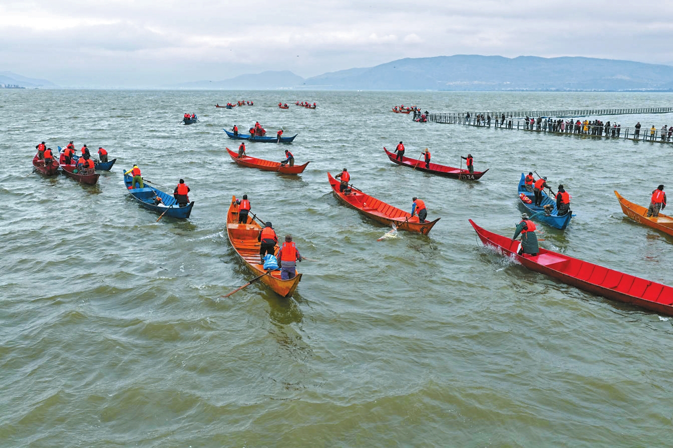 12月25日12时,随着发令枪响,40艘渔船从星云湖望海码头起航,“滇国故里·鱼跃星云”江川第18届开渔系列活动正式启动。本届开渔系列活动将持续至2026年1月10日,包含文艺演出、跨年晚会、烟花表演、无人机表演、商贸展销等。云南李家山青铜器博物馆专题展览和古玩集市同步举行。