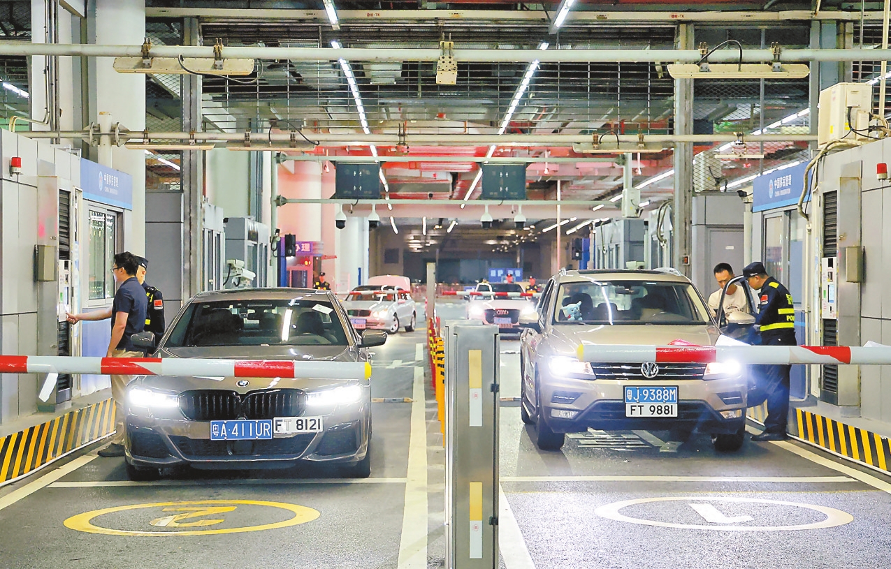 图为12月23日零时,“粤车南下”入境香港市区的首批通关车主在“一站式”通道办理通关手续。 新华社记者 黄国保 摄