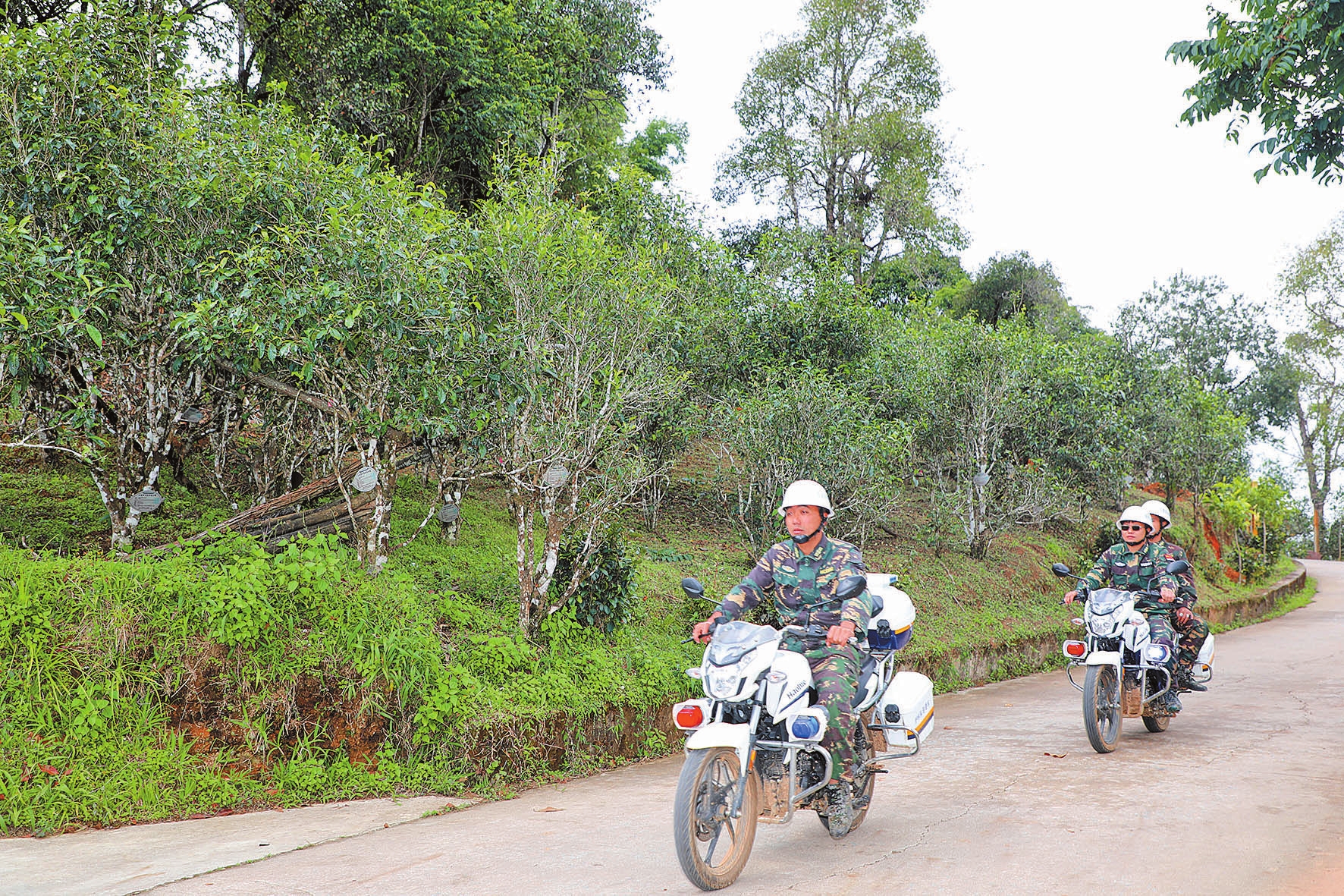 “工作站成立以来,组建了‘法治进村服务站’和‘布朗茶乡骑巡队’两支队伍。”布朗山乡党委副书记刘琦介绍说,由老班章村党支部副书记任分队长,2名党员、4名退役军人和13名青年组成的“布朗茶乡骑巡队”老班章分队成立后,积极探索新时期村寨经济效益反哺治安综合治理机制。由老班章村党支部投入资金15万元为骑巡队购买服装、摩托车、对讲机、执法记录仪、警棍盾牌等装备,并从村集体划出20亩茶园地交由骑巡队负责经营,所产生的收益全部用于骑巡队日常经费保障。布朗山边境派出所根据辖区面积大、路况差的实际,为便于警力下沉,在老班章村设立了驻村警务室,组织和带领骑巡分队展开日常训练、开展联合治安巡逻、调处纠纷等活动。截至今年11月,已查获偷越国(边)境案5起17人,打击了跨境违法犯罪行为的同时,有力地维护了村寨安全稳定和经济社会发展。