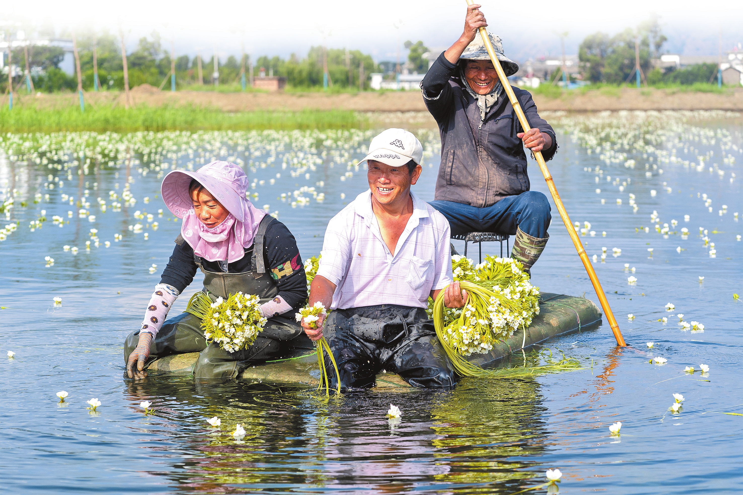 以高原特色现代生态农业发展为牵引,大理州三产深度融合发展的新业态、新模式不断涌现,人工养殖的海菜花成为了洱源县养殖户的“致富花”。截至目前,全县共种植海菜花近3000亩,年产量5400吨,带动158户种植户增收1080万元,并提供大量就近就业岗位。