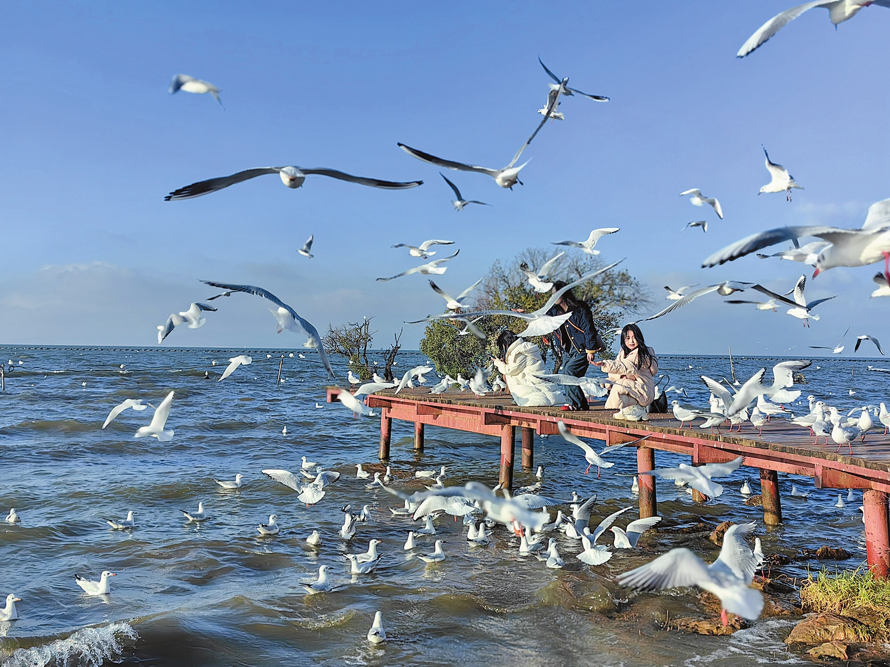 “许多省外游客,预订时都会特意询问是否方便观鸥,节假日和周末更是一房难求。”位于滇池畔的民宿主理人夏晶开心地分享,她真切感受到,“海鸥的翅膀,实实在在地‘扇’动了经济和消费。”