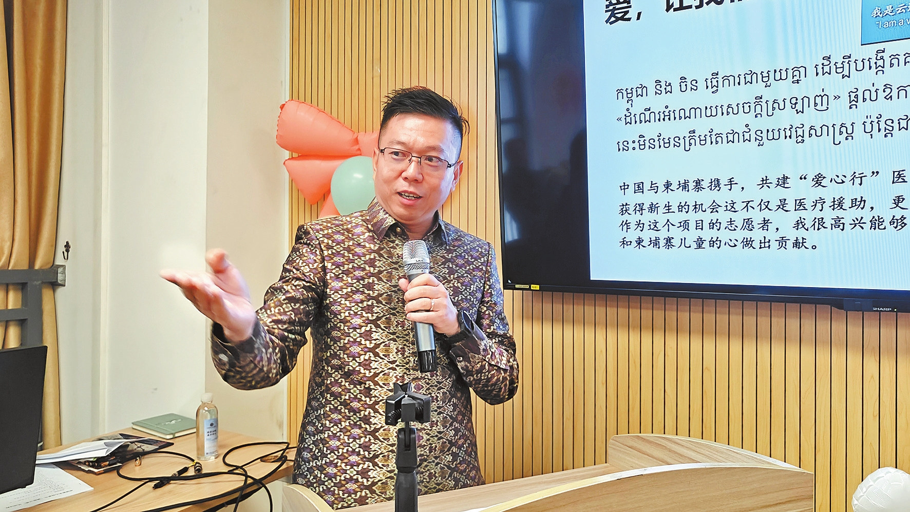 前来参加活动的柬埔寨柬中友好协会执行委员会委员、柬中关系发展学会会长谢莫尼勒,带来了一份特殊的礼物。他将自己参与翻译的柬文版《习近平谈治国理政》第一卷赠予云南友人,并在书的扉页上写道:“敬赠,以示柬中两国人民友谊长存!”
