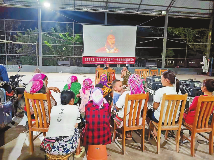 在活动开展过程中,省电影家协会、省电视艺术家协会负责策划统筹,各州市文联结合地域特色叠加文艺服务,新时代文明实践中心组织动员,农村院线保障技术落地。西双版纳傣族自治州联动村寨开展“中老边民观影大联欢”,佤语的抗美援朝题材影片《金刚川》在临沧市耿马傣族佤族自治县四排山乡石佛洞村来向组赶街天放映,傈僳语抗日战争题材影片《太行山上》在泸水市片马镇片四河村阔时节期间放映,找准时机把优秀电影送进千家万户。
