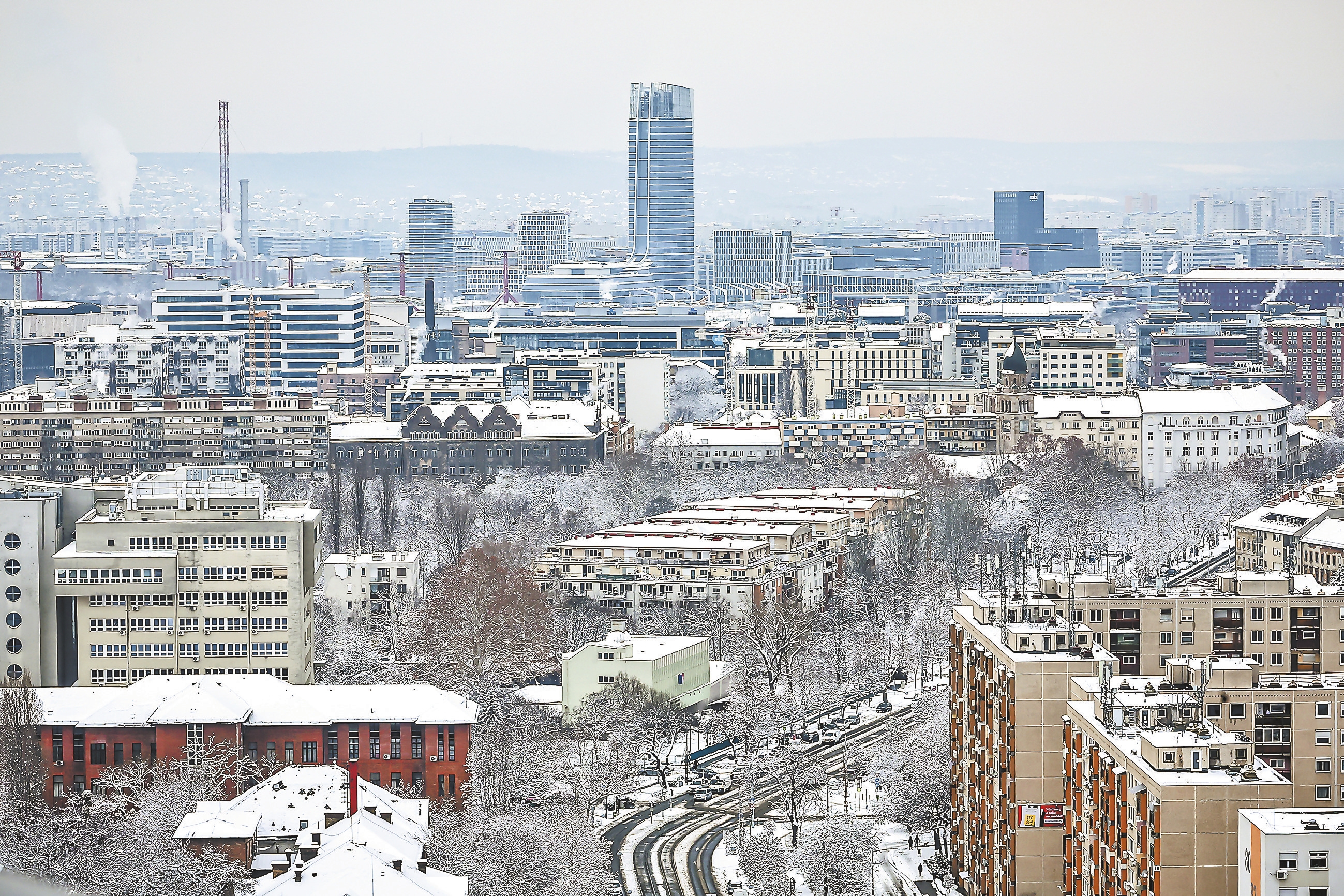 图为1月7日在匈牙利布达佩斯拍摄的城市雪景。新华社发 鲍洛格·达维德 摄