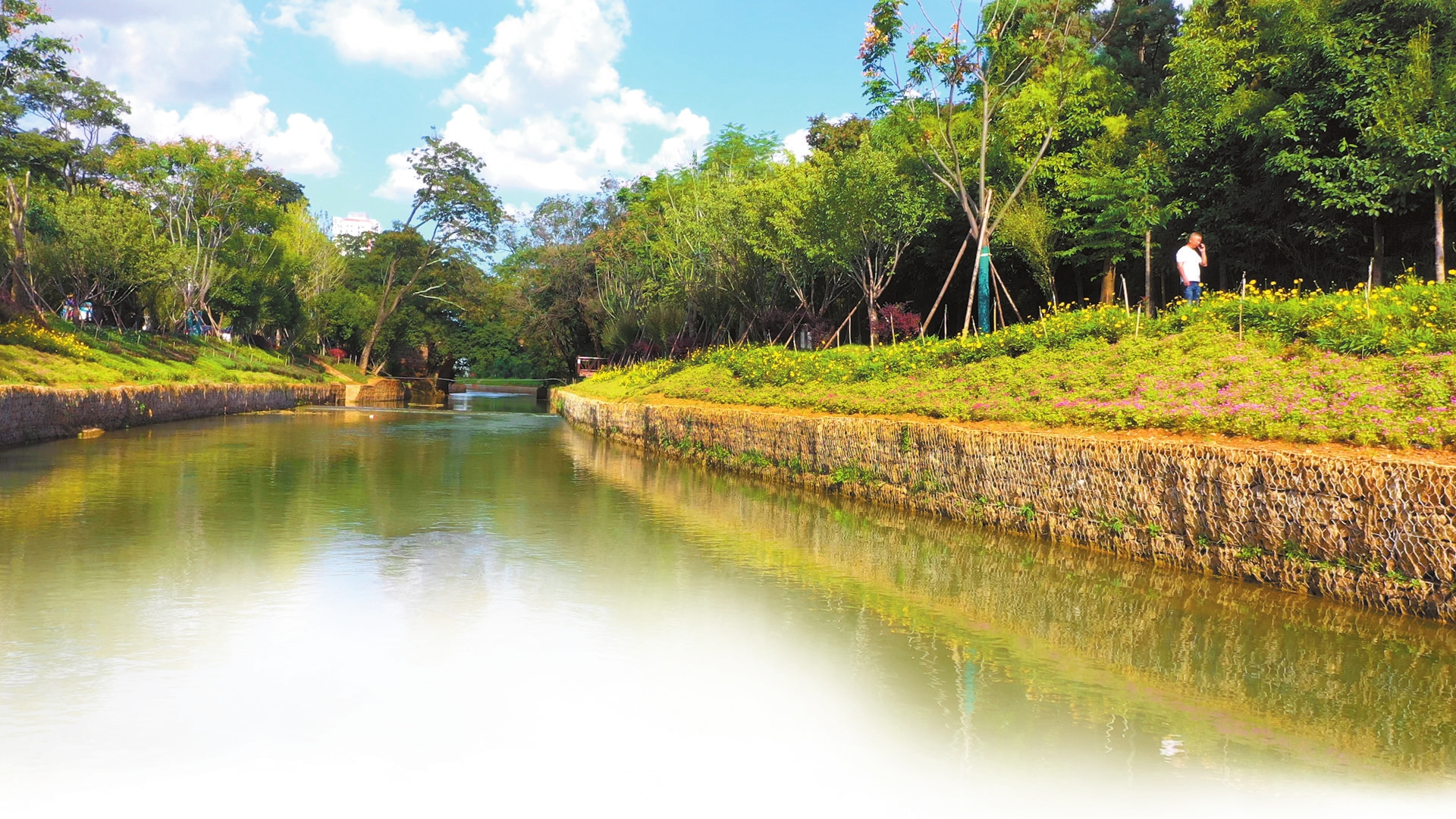 位于昆明市经开区的怡水公园构建起“听水、观水、净水、讲水”的完整生态体系,是昆明市生态治理的生动范例。“在公园建设的过程中,我们将生态智慧融入每一处细节。”昆明经开区(自贸试验区昆明片区)城管局工作人员王立介绍,通过雨水湿塘、生态花溪构建人工湿地净水系统,旱季引入普照水质净化厂的达标中水循环利用,搭配下凹绿地、生态植草沟等海绵设施,让公园变成“会呼吸、能净水”的生态样板。