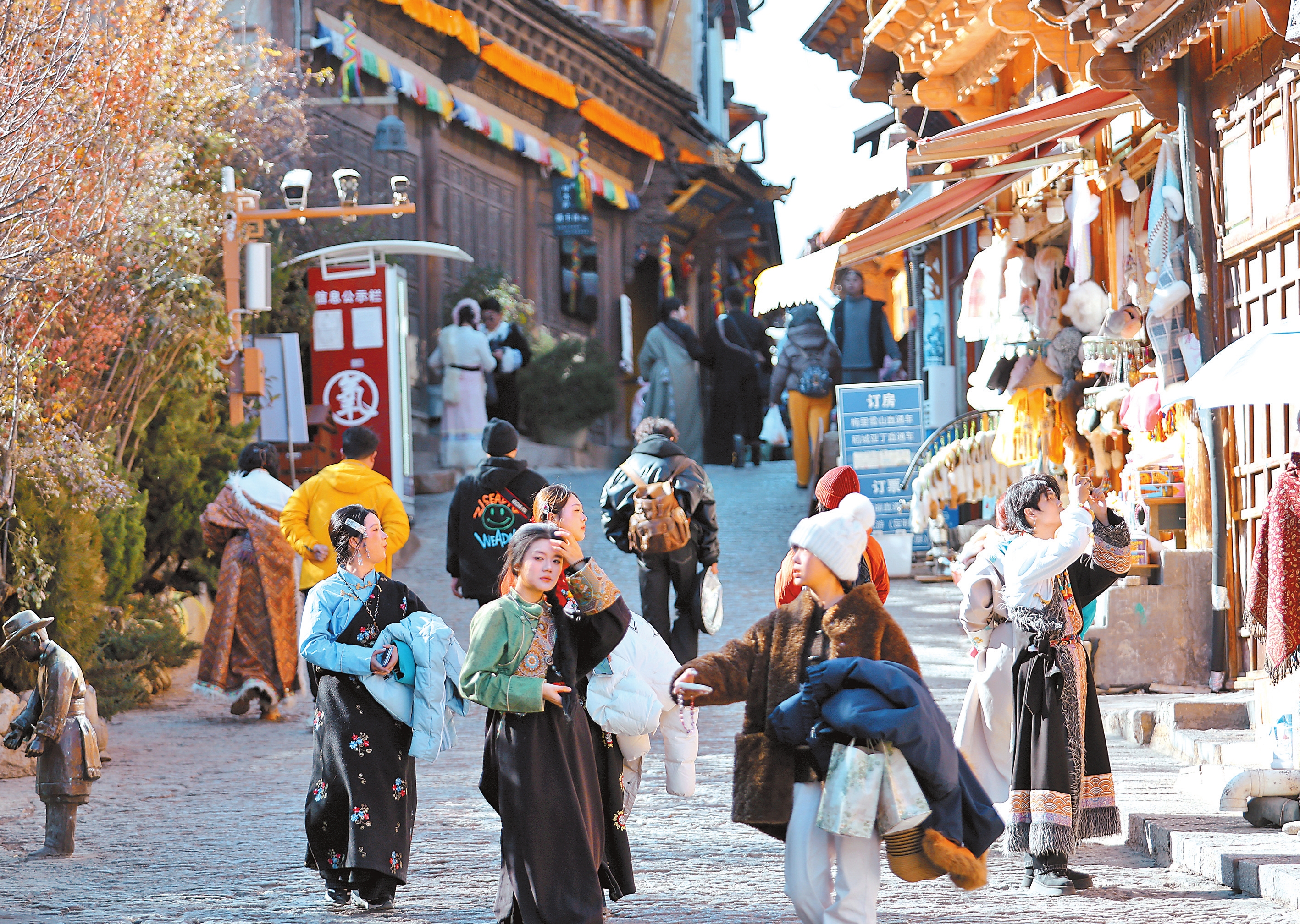 深冬时节,香格里拉独克宗古城游人如织。凭借深厚的历史文化底蕴和独特的自然风光,当地不断丰富文旅产品,擦亮“世界的香格里拉”招牌,吸引游客纷至沓来,沉浸式体验“有一种叫云南的生活”。本报记者 黄兴能 摄