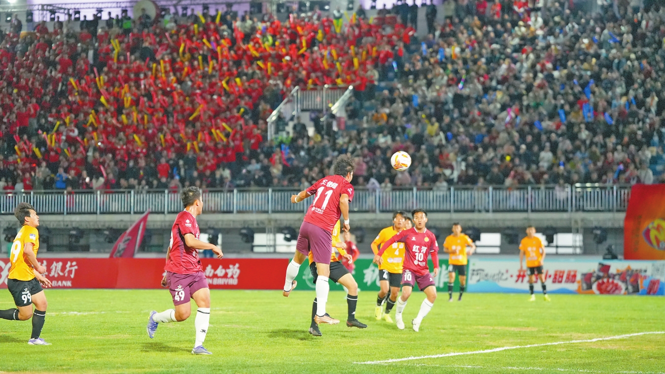 红河队坐镇主场迎来与保山队的对决。凭借前锋王俊超的帽子戏法及队友的锦上添花,红河队全程掌控比赛节奏,以4:0完胜对手。比赛伊始,红河队便依托主场优势展开猛烈攻势,中场球员持续向对方禁区输送火力,比赛第14分钟,红河队11号球员王俊超率先打破僵局,之后又凭借点球将比分扩大至2:0。上半场伤停补时阶段,红河队8号球员王野再进一球,将场上比分改写为3:0。下半场易边再战,双方互有攻守,比赛第50分钟,状态火热的王俊超再进一球完成帽子戏法,最终这一比分保持至终场,红河队以一场零封大胜收获3分。