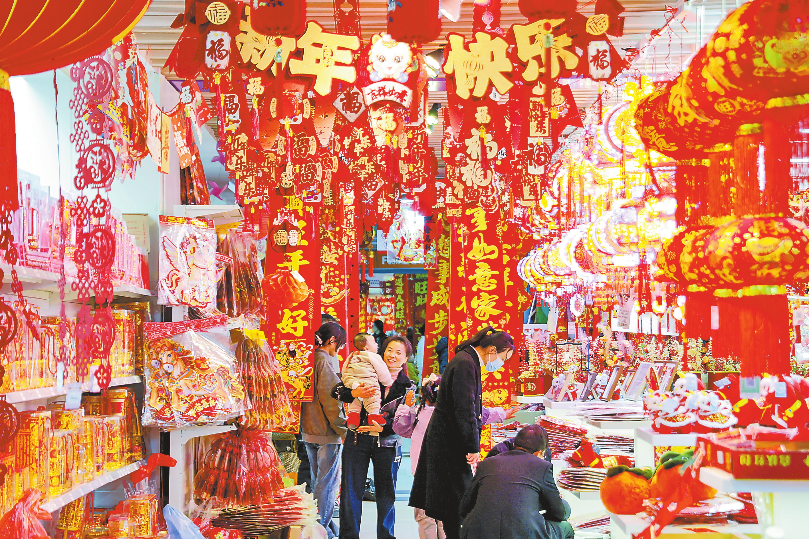 进入腊月以来,年货市场年味愈浓,消费升温。在昆明俊发·新螺蛳湾商贸城新春饰品专区,以马年为主题的各类饰品热销;斗南花市迎来“年宵花时节”,蝴蝶兰、冬青、永生花等成为市民装扮家居、馈赠亲友的热门选择,带动销量稳步上升。各地特色年货走俏,传统节庆消费市场购销两旺。