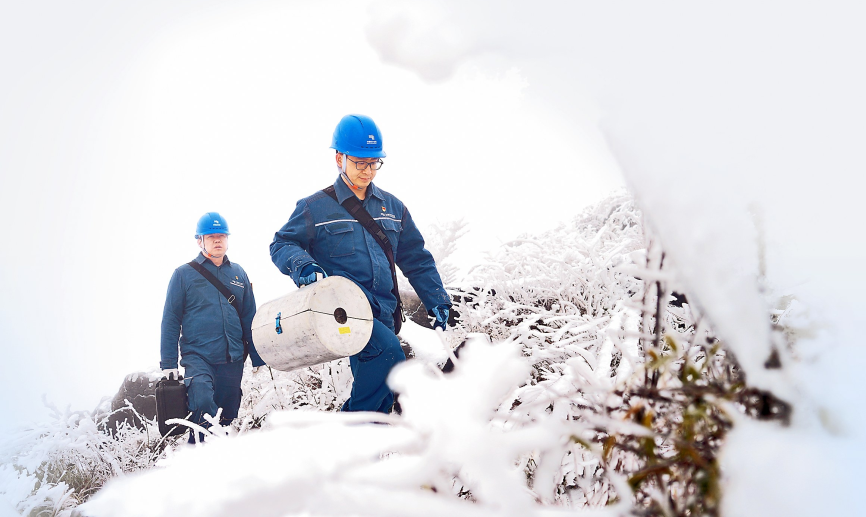 1月19日以来,新一轮寒潮侵袭滇东北、黔东等地,牛从甲乙直流线路地线22个分段、双回接地极线路及4回交流进线相继出现不同程度覆冰。该站立即启动应急响应,党支部组建抗冰突击队,党员带头坚守一线。运维人员昼夜轮值,精准操作两套融冰装置;检修团队随时待命,及时处置设备异常。雨夜中,巡检人员冒雨开展红外测温,全力确保“电到冰除”。