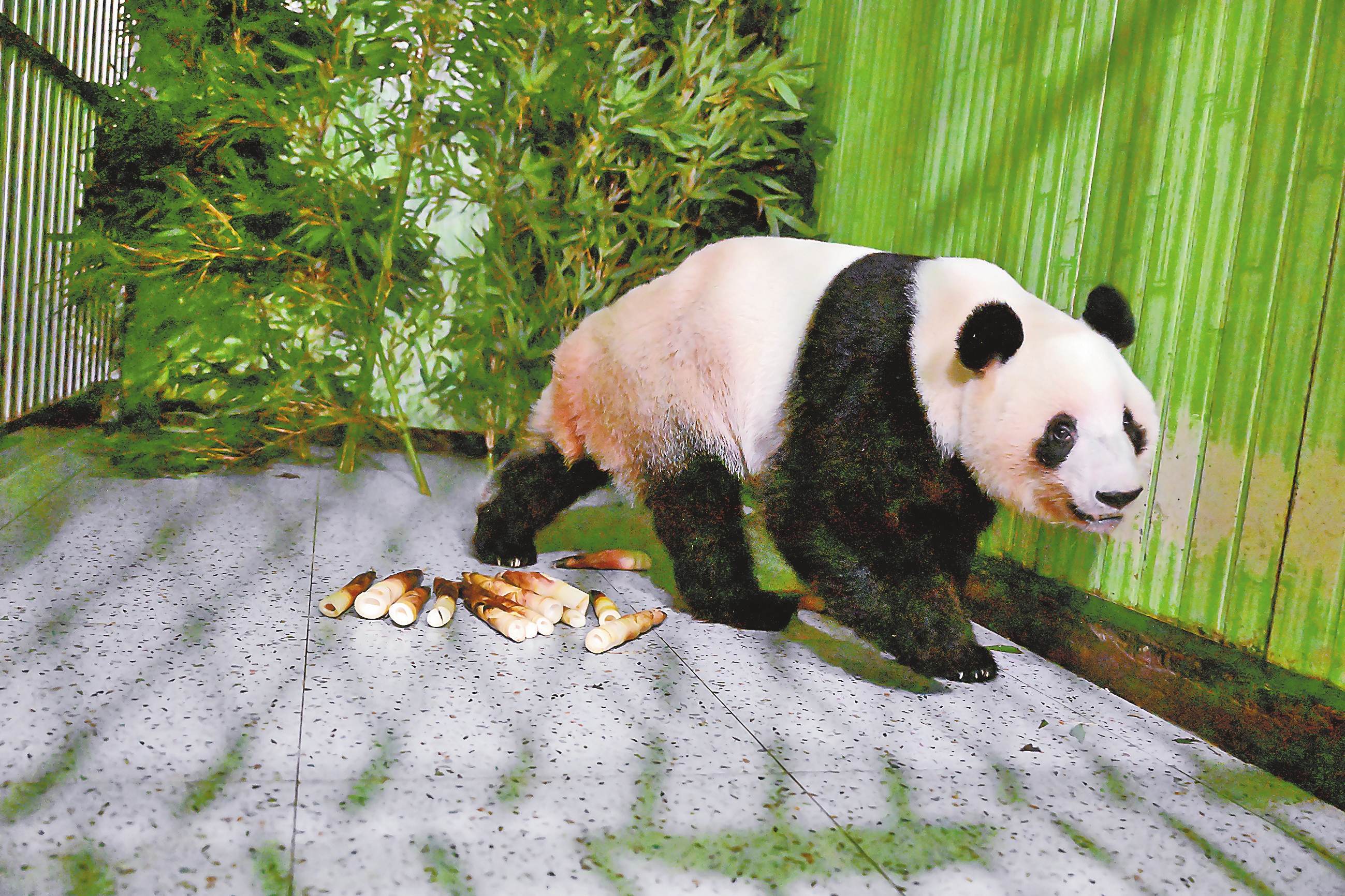 北京时间1月28日1时,我国旅居日本东京上野动物园的大熊猫“晓晓”“蕾蕾”飞抵成都天府国际机场。早上6时,两只大熊猫顺利入住中国大熊猫保护研究中心雅安基地,接受隔离检疫。大熊猫“晓晓”“蕾蕾”2021年出生于东京上野动物园,是此前旅日大熊猫“比力”“仙女”繁育的后代。图为1月28日,大熊猫“蕾蕾”入住中国大熊猫保护研究中心雅安基地。新华社发 中国大熊猫保护研究中心供图
