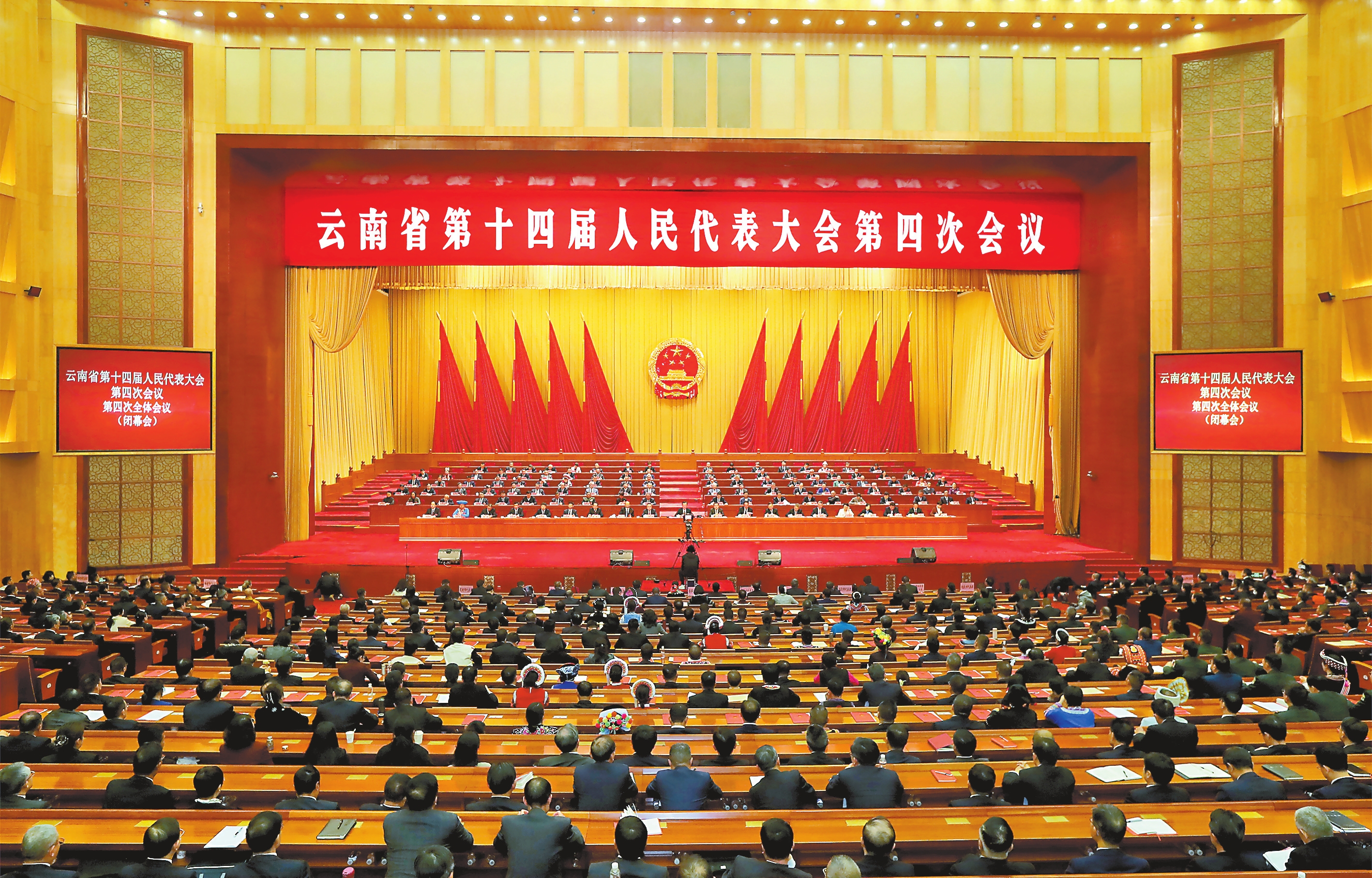 本报讯(记者 杨猛 左超 郎晶晶) 2月1日上午,云南省第十四届人民代表大会第四次会议圆满完成各项议程,在昆明胜利闭幕。大会号召,全省各族人民要更加紧密地团结在以习近平同志为核心的党中央周围,凝心聚力抓落实,只争朝夕加油干,马不停蹄、阔步前进,奋力实现“十五五”开好局起好步,为开创云南发展新局面而团结奋斗。