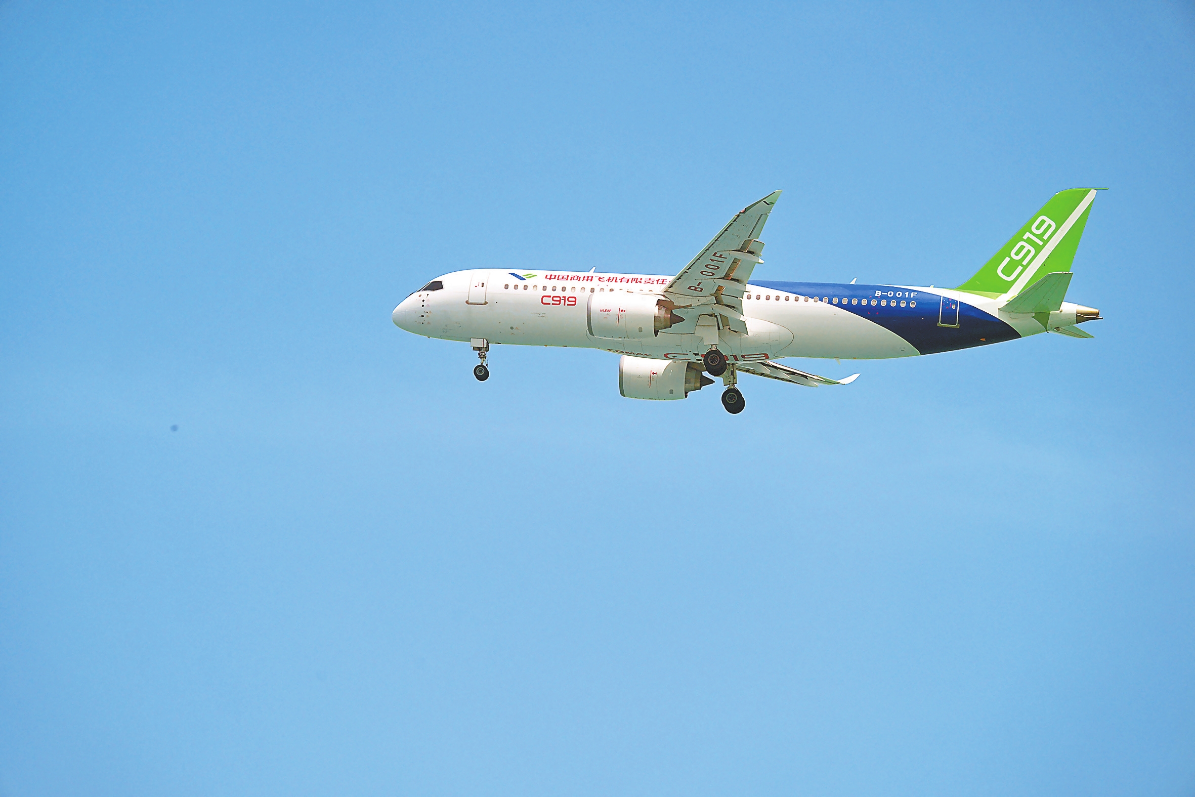 下图:一架中国商飞C919飞机进行飞行表演。
