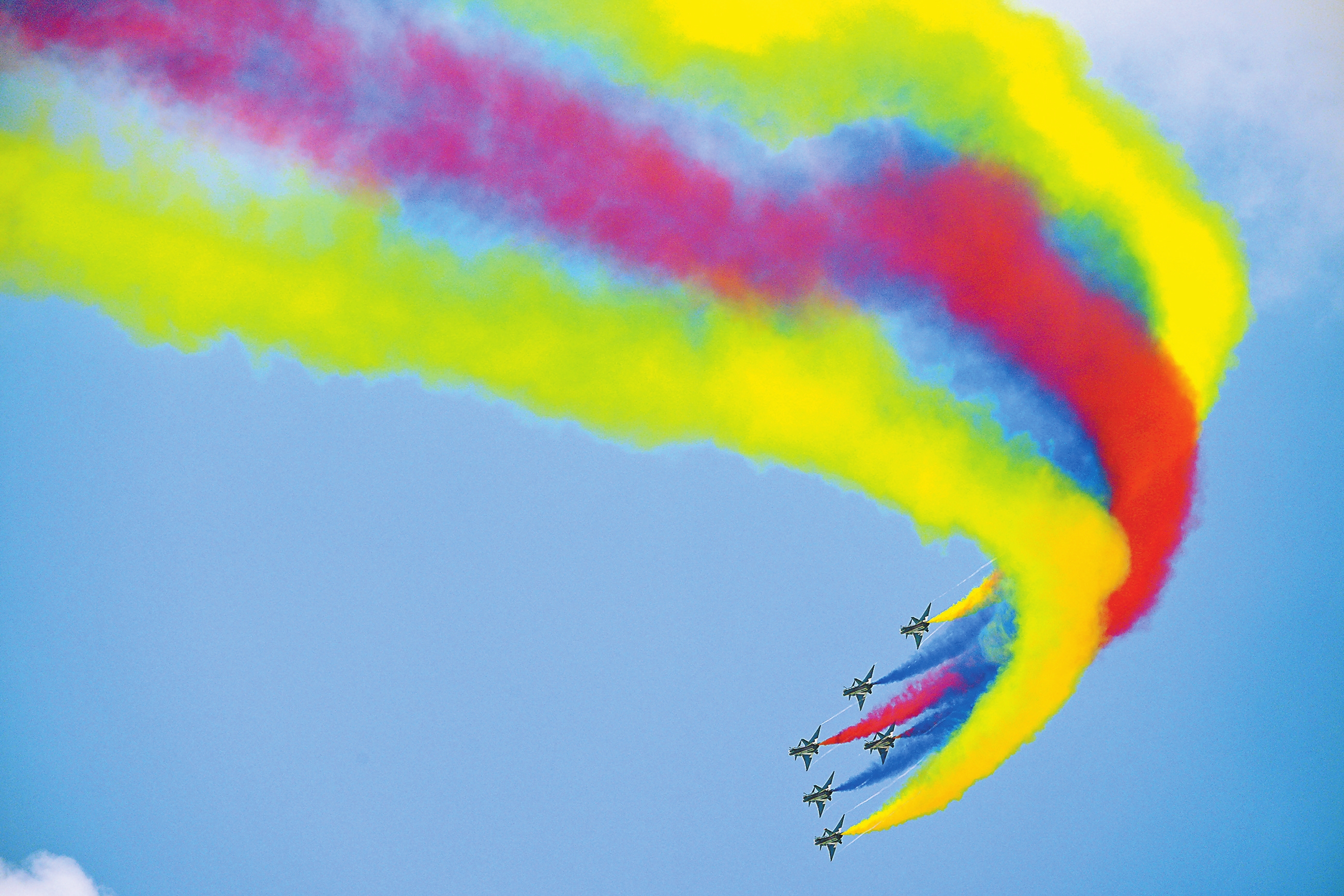 上图:中国空军八一飞行表演队进行飞行表演。