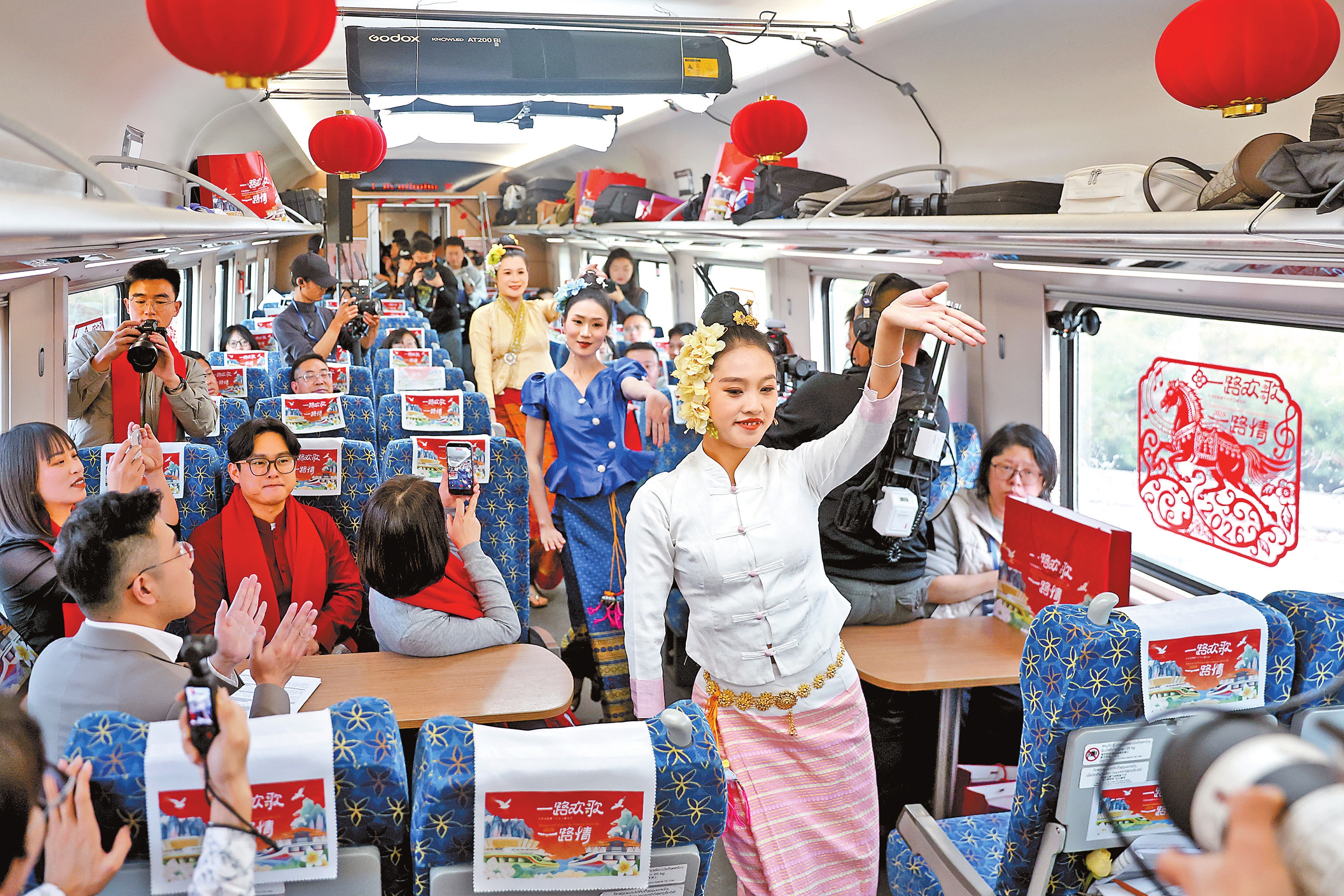 本报讯(记者 张敏 常远 实习生 彭希然) 2026年是中老建交65周年。2月4日适逢立春,阳和启蛰,“一路欢歌一路情”中老铁路春节文化主题活动在飞驰的中老铁路列车上温情上演,并通过直播向全球观众呈现了一场行进中的文化交流盛会,生动传递了中老两国之间的深厚情谊与时代新风。
