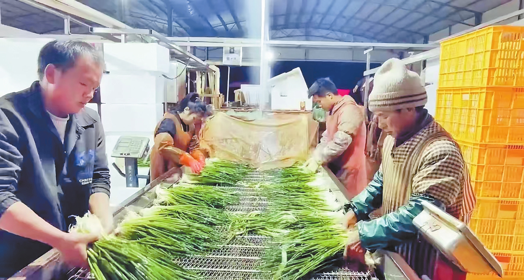 泸西县通过推广“龙头企业+合作社+农户”订单生产模式,统一供应优质小香葱种苗、生产技术规程和保价收购协议,将分散的生产单元有效纳入产业化经营链条,规模化种植带动3000余户农户参与生产管理。在中后端加工储运环节,集群化建成160座冷库、33家洗葱厂(402条生产线)、13家制冰厂和3家泡沫箱厂,日加工转运能力达2000吨,每日吸纳数万名群众从事清洗、分拣、包装、搬运、冷藏、运输等岗位。