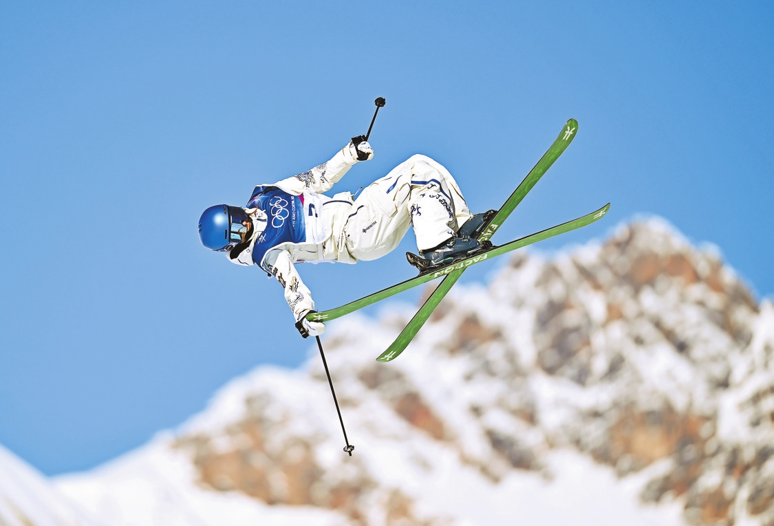当地时间2月7日,在意大利利维尼奥举行的米兰-科尔蒂纳冬奥会自由式滑雪女子坡面障碍技巧资格赛中,中国选手谷爱凌、刘梦婷、杨如意和韩林杉迎来本届赛事首秀。图为谷爱凌在比赛中。 新华社记者 张宏祥 摄