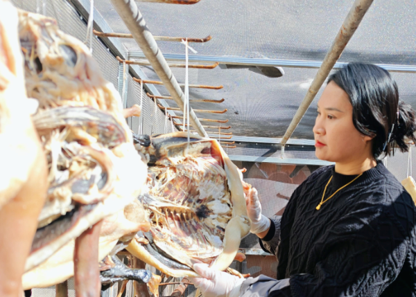 在“阿巧孃”腊鹅加工厂的热气氤氲中,马沛菊带着工人们分工协作,清洗、去杂、精盐匀抹、压制成型、悬挂晾晒,道道工序精细,全程手工操作。“每一只腊鹅都要经过15至30天的自然发酵与风干,才能皮色金黄、白肉如玉。”马沛菊说。随着春节临近,腊鹅进入加工和销售高峰期,工厂每天能卖出将近200公斤腊鹅,还有不少卖到国外。“凉切尝本味、煎制皮酥脆、慢炖煮火锅,再搭配一碗香糯的鹅油拌饭,都是永平腊鹅的经典吃法,很受各地食客欢迎。”她说。
