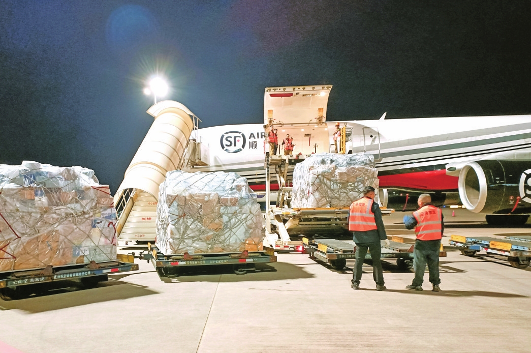 为满足快速增长的寄递需求,2月7日至15日,顺丰速运新增投入2架全货机,扩增76吨运力,加上原有的1架全货机和散航资源,搭建起助力云品出滇的空中快线,近期日均航空出港量达500吨以上,覆盖全国270多个城市,大部分实现次日达。