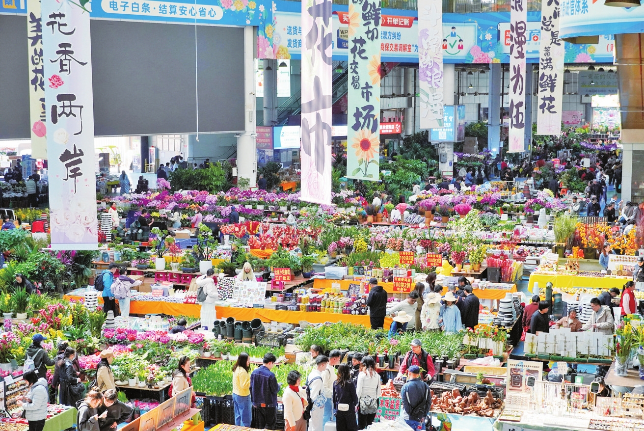 走进亚洲最大的花卉交易市场——昆明斗南花卉交易市场,仿佛一脚踏入提前苏醒的春天。主场馆内,客流较平日翻番,商户的吆喝声、游客的问询声与馥郁花香交织,奏响了热闹的新春交响曲。