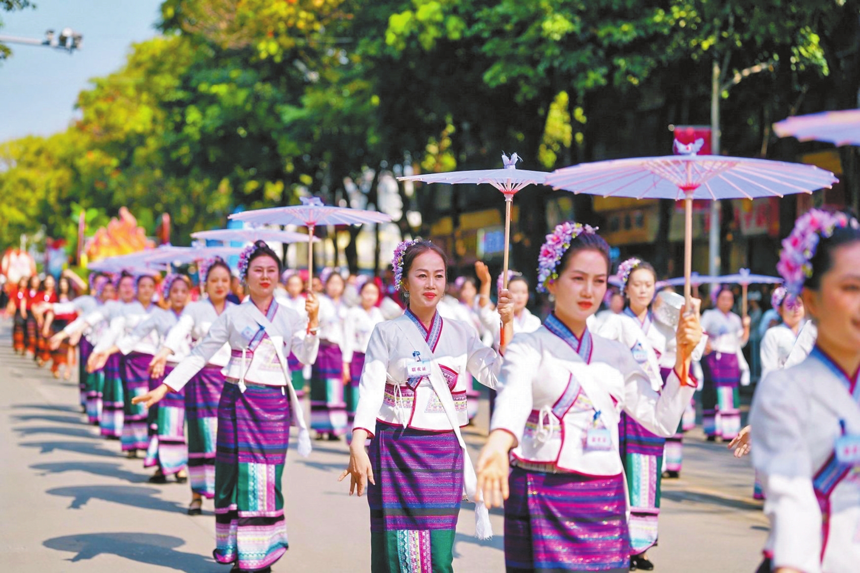 本次巡游共设置11个方队,总人数近700人,其中旅居人员260多名。“参加了巡演,非常荣幸。元江是个好地方,是我的第二故乡。”来自辽宁的旅居人员王丽贤说。