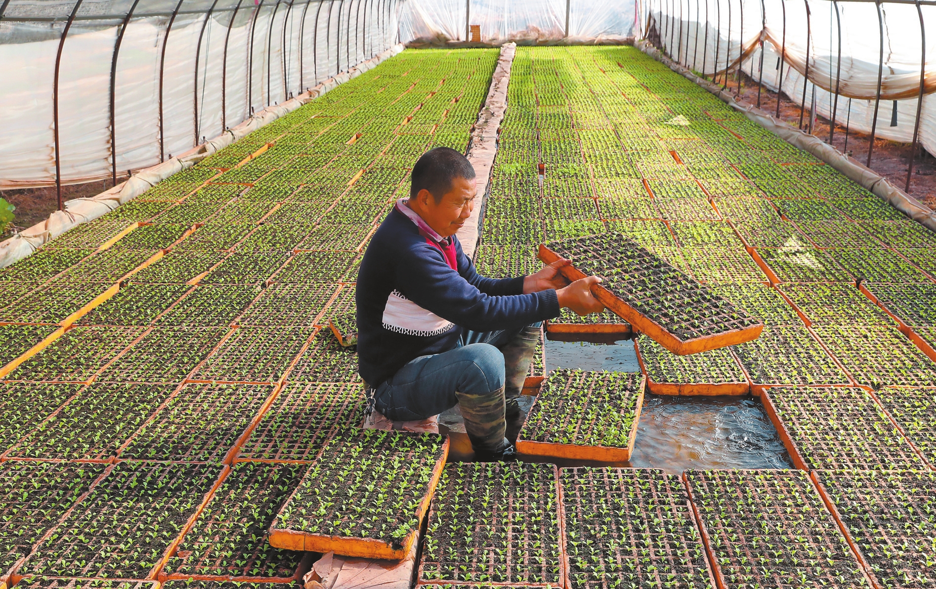 新春时节,昆明市晋宁区的花农和菜农们忙碌在田间地头,处处呈现着人勤春早、农事不误、产销两旺的景象。图为在晋宁区晋城街道,菜农进行生菜大棚育苗工作,为新一季的移栽做好充分准备。本报记者 杨峥 摄