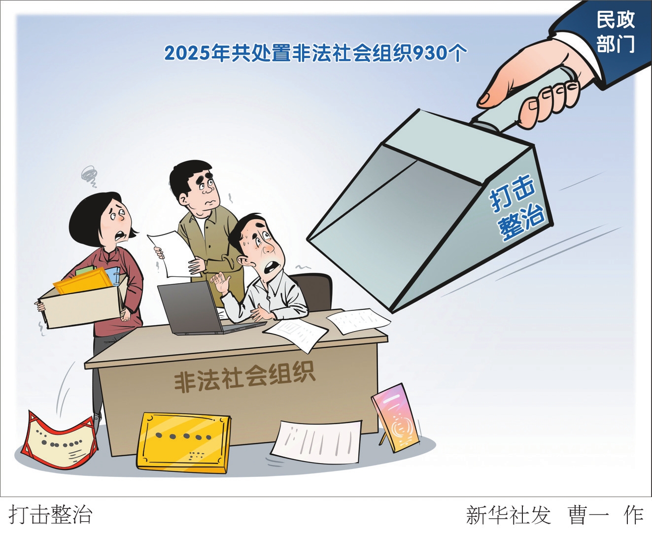 据新华社北京2月28日电(记者 朱高祥) 记者2月28日从民政部获悉,2025年,各地民政部门深入推进打击整治非法社会组织,全年共处置非法社会组织930个,其中取缔203个、劝散339个、自行解散321个、引导登记67个。