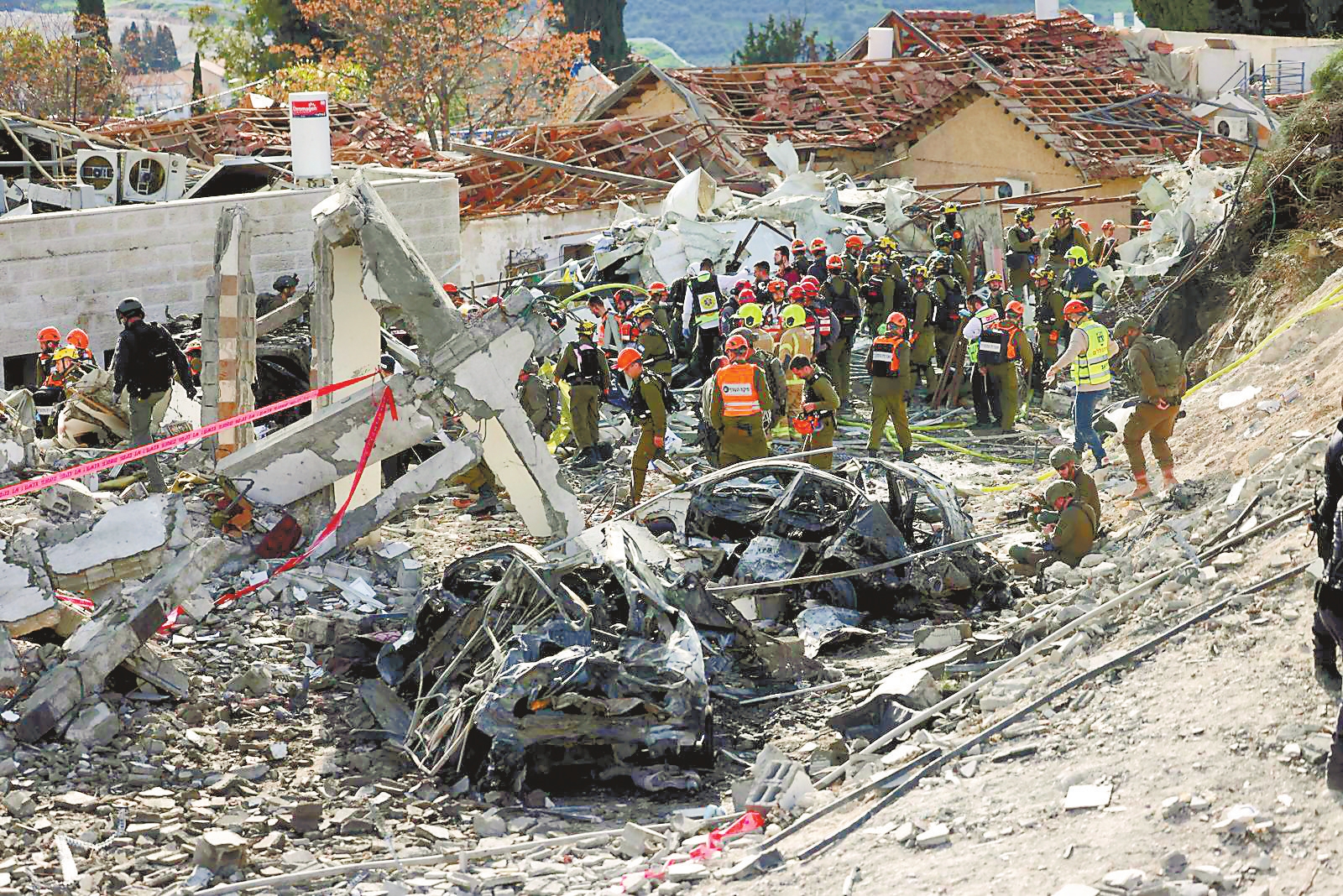 3月1日在耶路撒冷西部城镇贝特谢梅什拍摄的导弹袭击现场。 新华社发 贾马尔·阿瓦德 摄