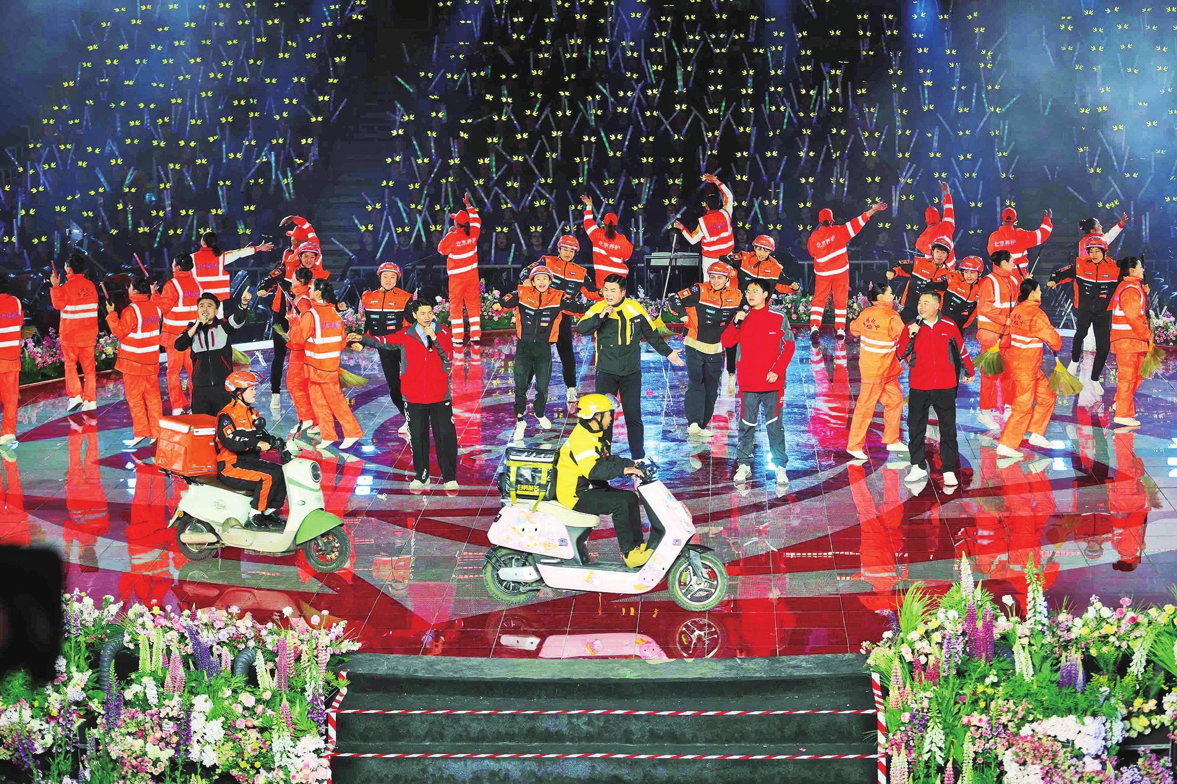 这些朗朗上口又妙趣横生的魔改歌词源自盛典晚会的创意拉歌环节。来自各行各业的观众方阵打破传统舞台边界,随着激昂旋律齐声合唱、即兴互动。歌声此起彼伏,气势如虹,瞬间将盛典晚会化作一场全民狂欢。