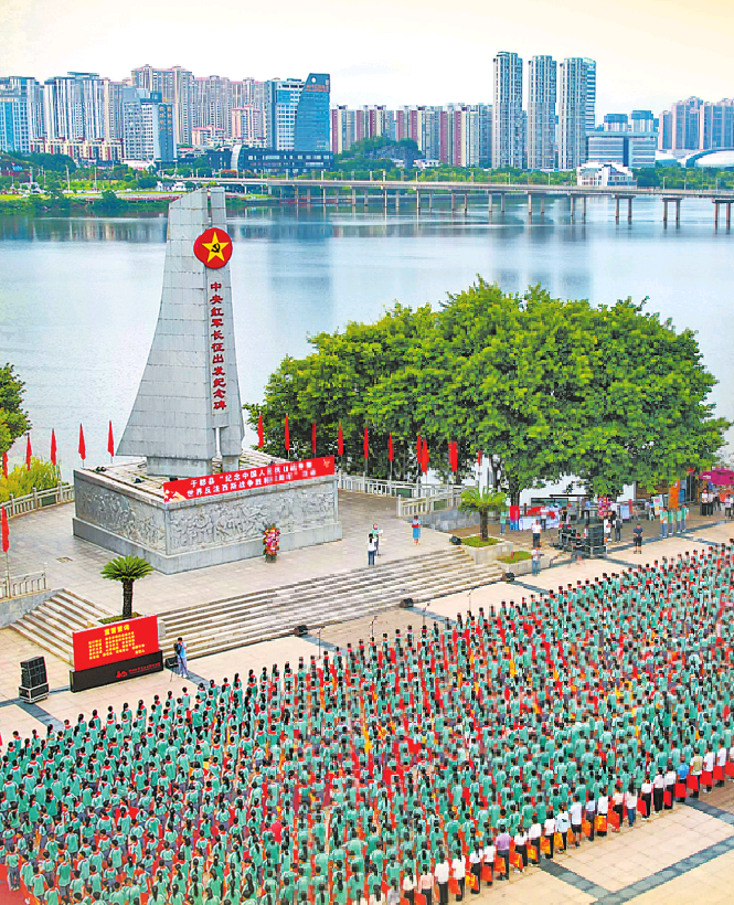 江西省于都县中小学师生代表举行纪念活动。 张盛 摄