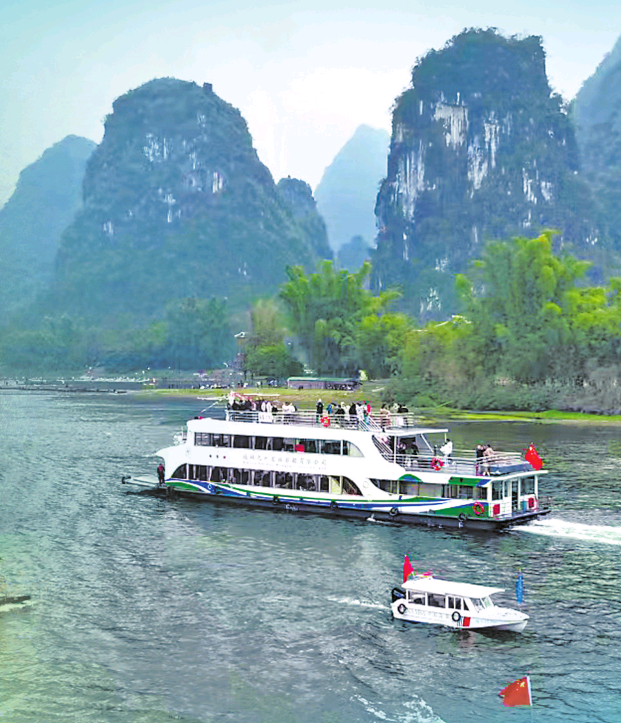 游客乘船游览广西桂林漓江。 王夫韬 摄