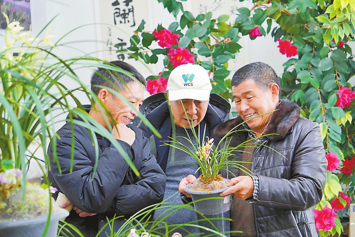 近日,香格里拉花之旅春季花展在香格里拉高山植物园举办。本届花展由香格里拉高山植物园主办,联合全州各家兰苑及兰花爱好者共同参展,共有20家兰苑送展,展出兰花约600盆。花展为广大市民和游客呈现了精品兰花的雅致风姿,向世界展示香格里拉生物多样性之美和深厚人文底蕴。图为兰花爱好者交流养兰心得。本报记者 贡秋次仁 摄