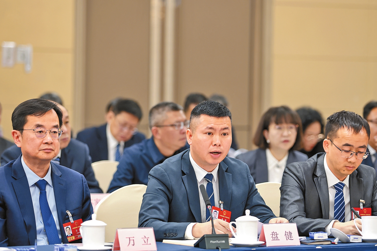 在滇全国人大代表继续审议全国人大常委会工作报告和两高工作报告。 本报记者 陈飞 胡妤雅 摄