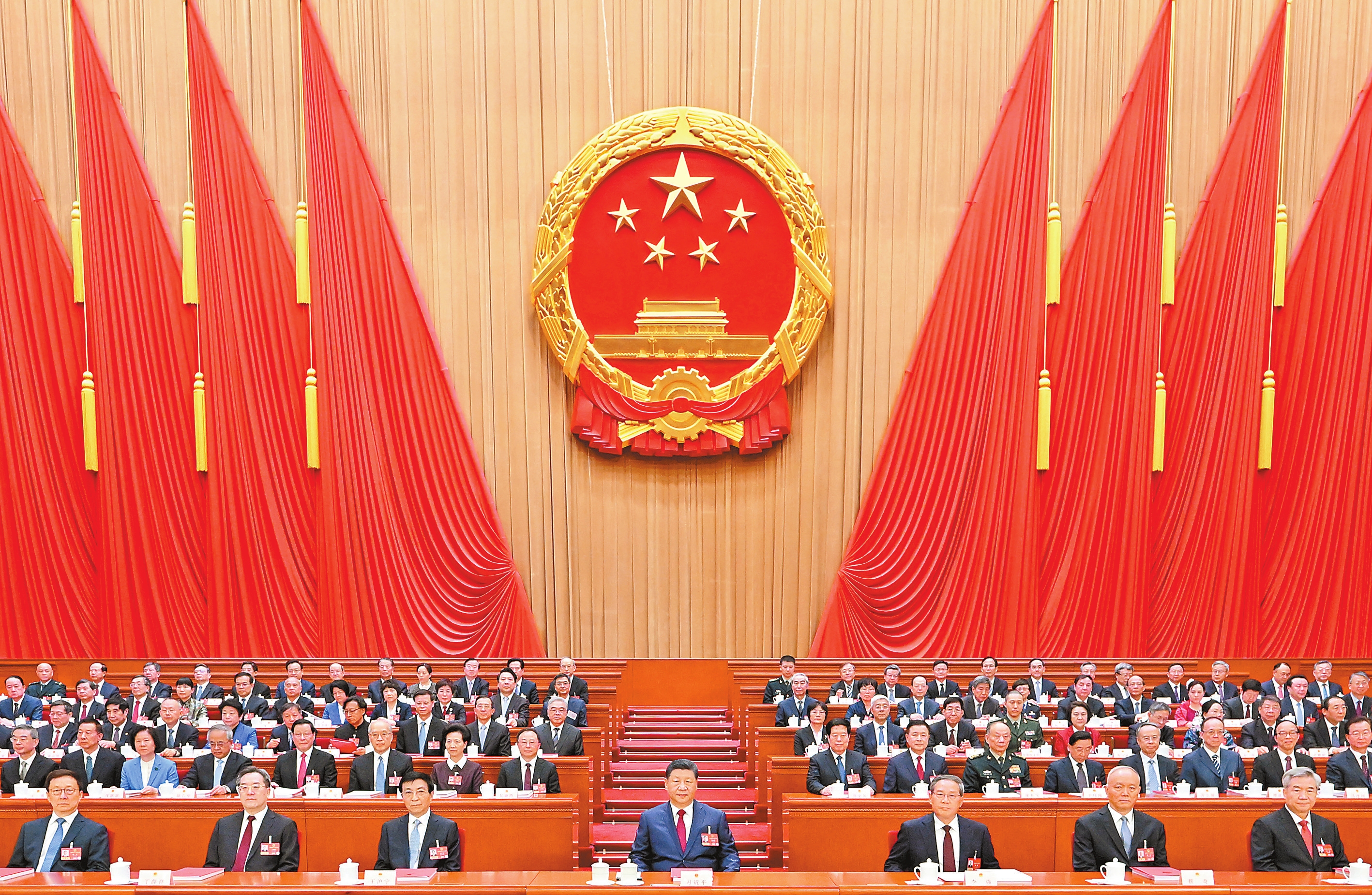 3月12日下午,第十四届全国人民代表大会第四次会议在北京人民大会堂闭幕。党和国家领导人习近平、李强、王沪宁、蔡奇、丁薛祥、李希、韩正等在主席台就座。新华社记者 谢环驰 摄