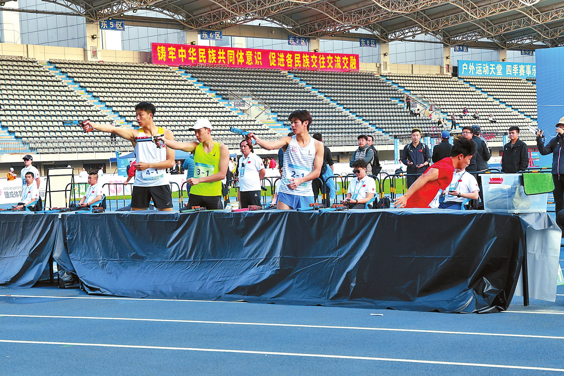 现代五项比赛包括击剑、障碍、游泳、射击和跑步项目,涵盖个人赛、团体赛、接力赛、混合接力赛4个小项。在开幕后进行的女子接力赛中,上海队凭借稳定发挥和默契配合,力压群芳夺得冠军,广东队与湖北队分获二、三名。