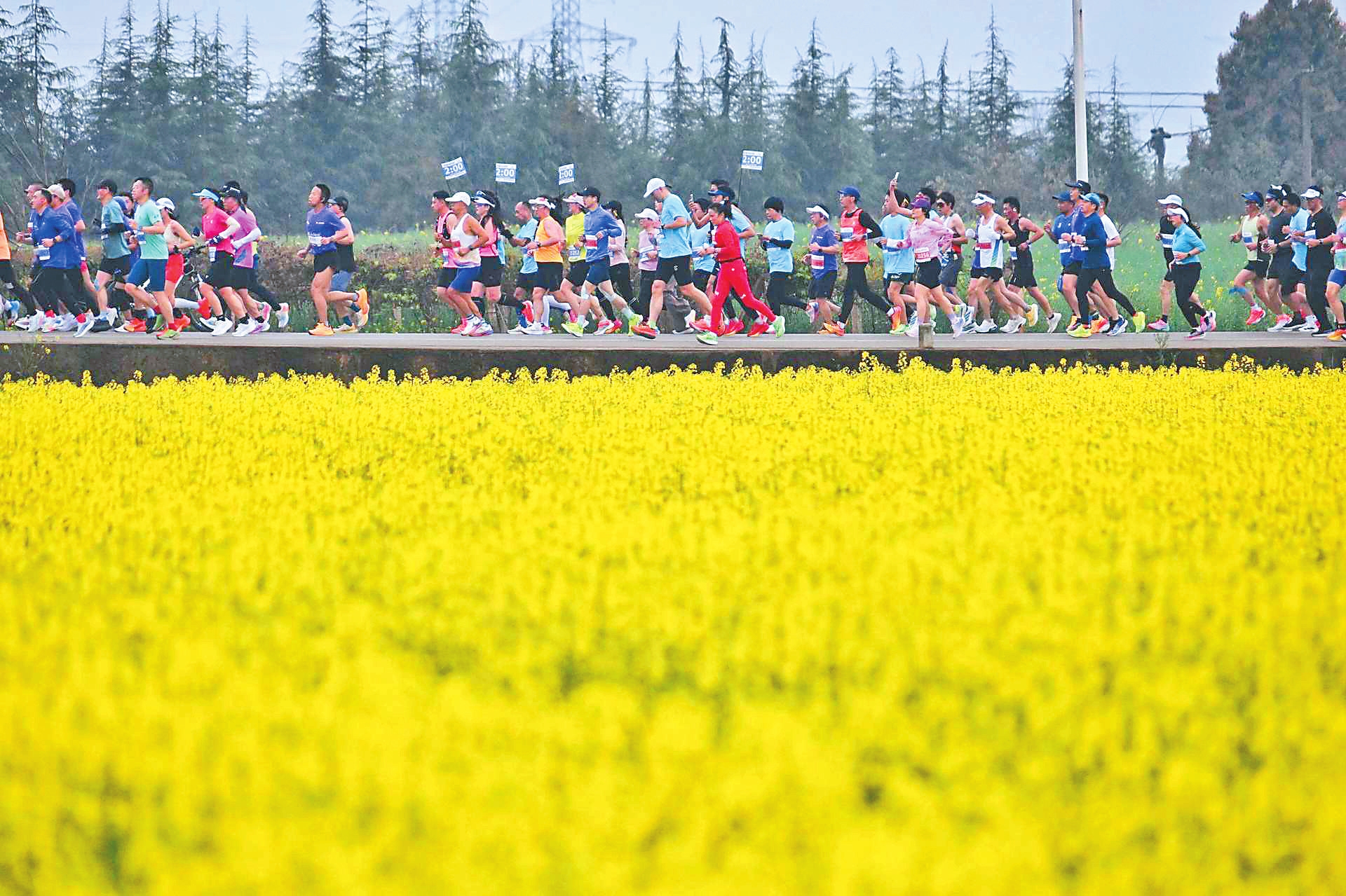 图为参赛选手跑步穿越花海。