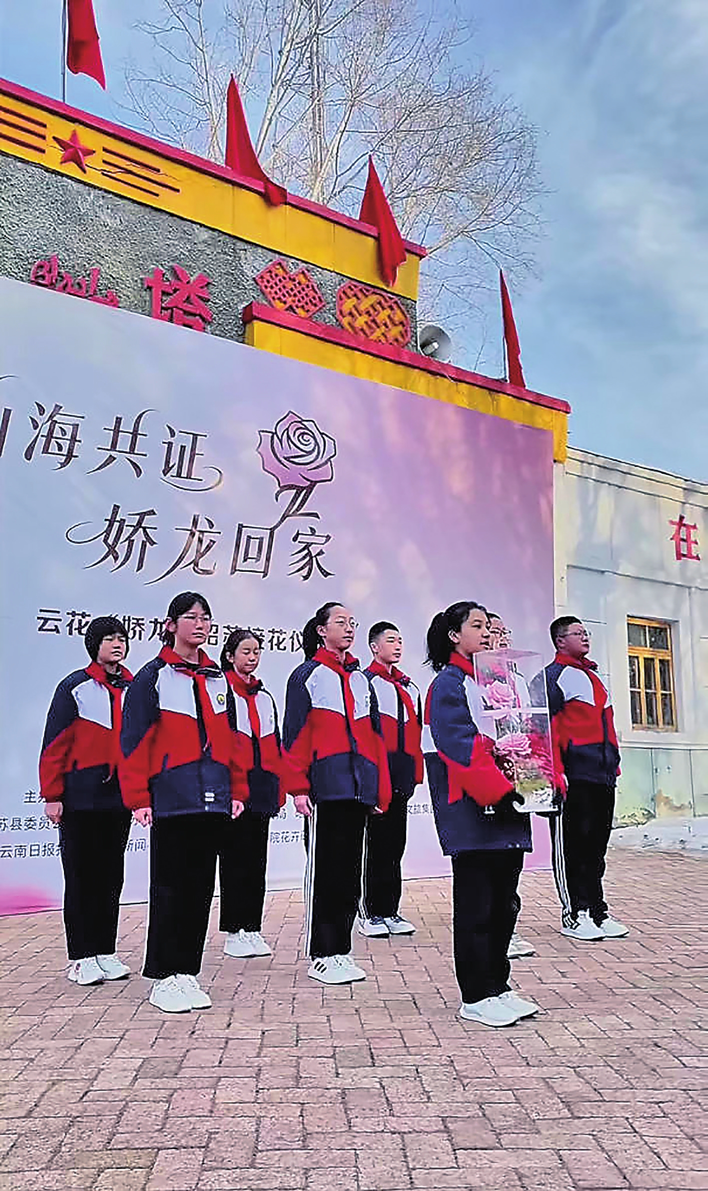 2月4日上午11时,在新疆伊犁昭苏县灯塔知青馆娇龙厅外,“山海共证·娇龙回家”云花“娇龙”接花仪式举行,“娇龙”月季从彩云之南到西部边疆,历经4000多公里跋涉来到新疆昭苏,安放于此。