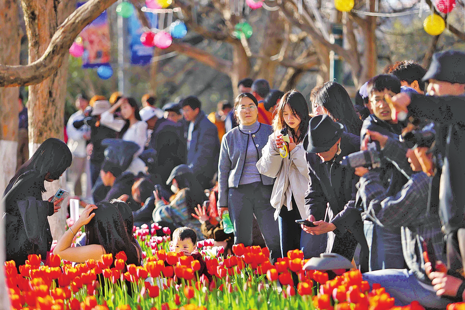 翠湖郁金香竞相绽放,吸引众多市民游客前来赏花。 本报记者 高吴双 摄