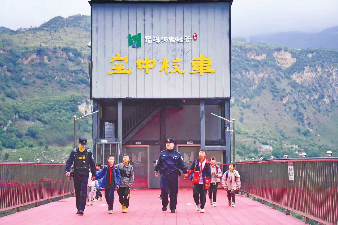晨曦初露,他们在站台值守,细致检查、有序疏导;暮色降临,他们在缆口等候,护送学子、温暖归途;节假日客流如潮,他们专设“学生绿色通道”,让求学之路不被喧嚣惊扰;“六一”儿童节,憨态可掬的“警察小熊”走进大山,把平安与欢笑一同送到孩子身边。