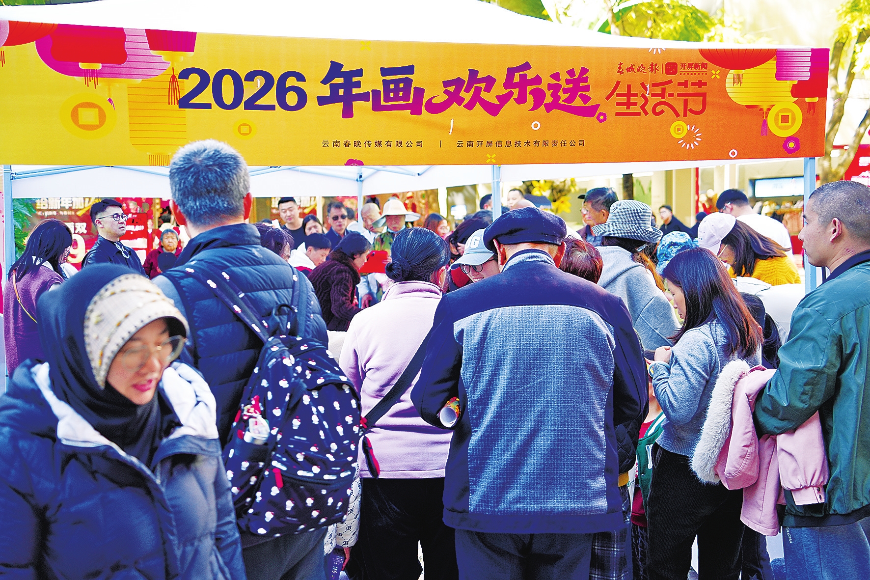 2月11日,春城晚报(开屏新闻)2026“年画欢乐送”的最后一场公益活动在南屏街举行。随着最后一批马年主题年画尽数送到市民手中,这场扎根基层、服务群众的文化公益活动正式画上句号。作为新春走基层系列活动的重要组成部分,本次活动深耕昆明南屏街、大观公园、社区便民广场等多个区域开展派送,从繁华商圈到民生阵地,每一处现场都人头攒动、笑语盈盈,最终累计送出3万幅精美年画,搭配近千件吉祥手写春联、趣味漫画作品以及创意文创,以传统年俗为纽带,将新春祝福与文化暖意送到百姓身边。