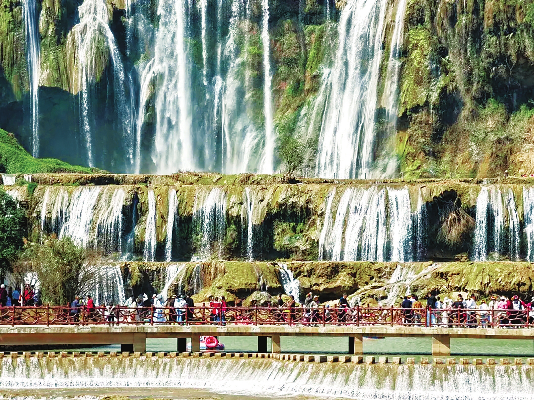 春节假期,罗平九龙瀑布群景区迎来客流高峰。十级叠瀑飞流直下,沿岸油菜花田绵延绽放,形成“瀑在花中、花伴瀑生”的独特景观,景区日均接待游客超万人次。为提升游玩体验,景区在传统观瀑、竹筏、索道等项目基础上,重磅推出瀑布咖啡、布依族扎染等休闲体验业态,将自然山水、民族文化与慢生活消费深度融合,打造全新游玩场景。