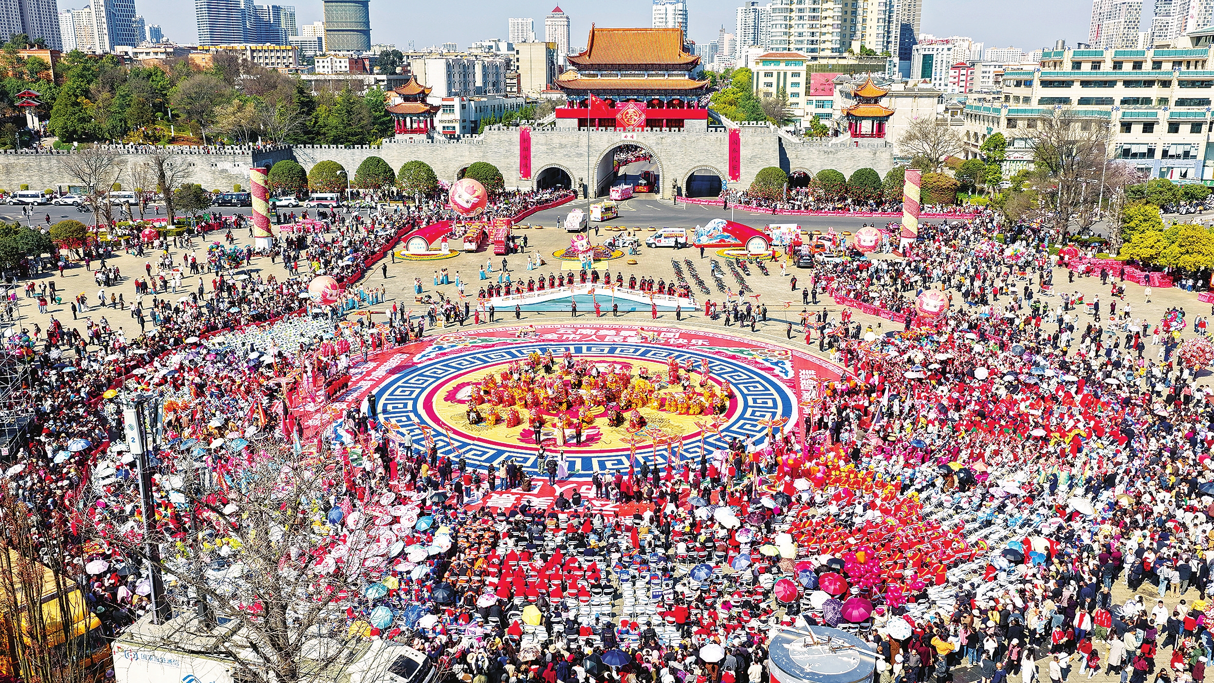 2月17日,曲靖麒麟区2026年春节“千人舞麒麟”民俗文化活动在南城门广场举行,市民游客在欢歌笑语中感受浓浓年味。 本报记者 蒋琼波 通讯员 李丽 刘贤坤 王蓝娜 摄